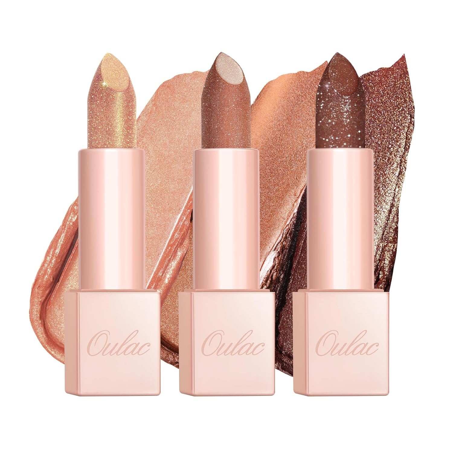 Oulac Moisture Nude Brown Lipstick Set 3PCS - Infinity High Shine Finish, Hydrating Vegan Lipstick Infused with Damask Rose Oil for All-Day Comfort, Gluten-Free, PG13+PG06+D06