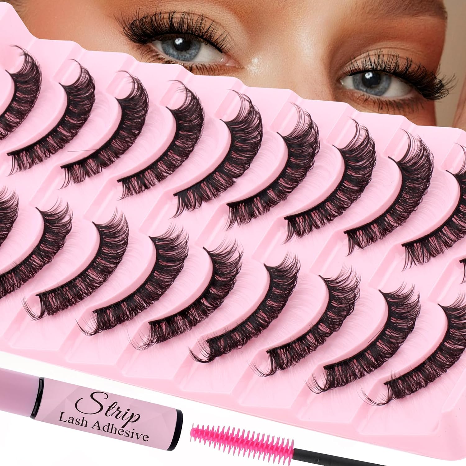 Strip Lash with Glue for DIY Lash-users: 10 Pairs, DIY, Natural Look, Fluffy, Manga, Wispy, Waterproof, Anime, Cat Eye, D Curl, 601
