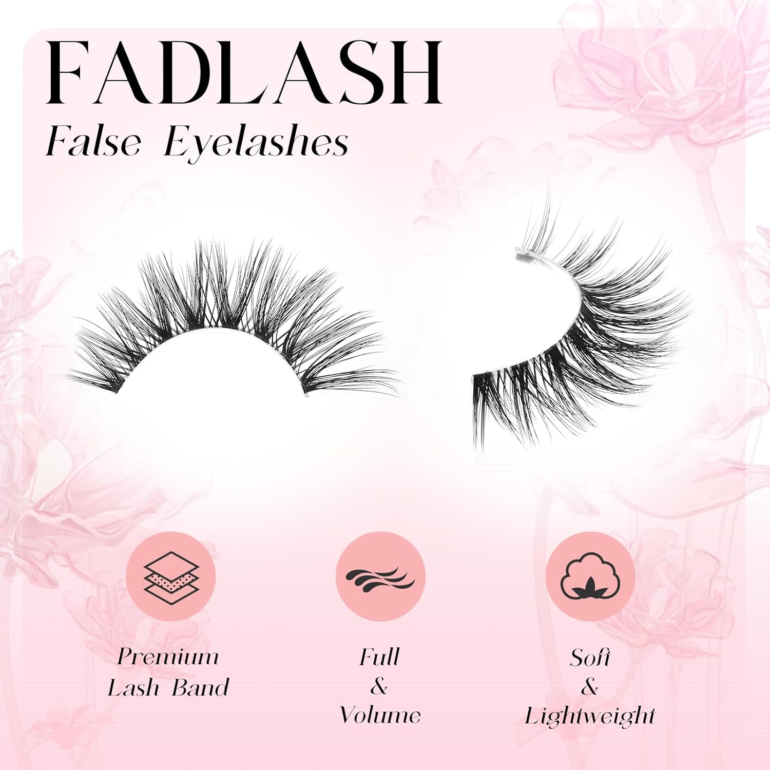FADLASH False Eyelashes Natural Look Cat Eye Lashes with Thin Band Wear Comfortable Black Fake Lashes, Pack 10 Pairs, LZ209