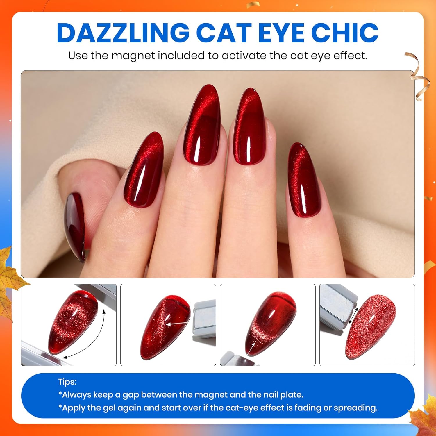 - Featuring a versatile range of colors : from warm yellows and vibrant oranges to bold reds, cat eye gel, and eye-catching glitters β this kit has the perfect shade to match any outfit or mood. Whether you're creating a cozy look for everyday wear or something bold for a summer event, you'll find the ideal color right here.