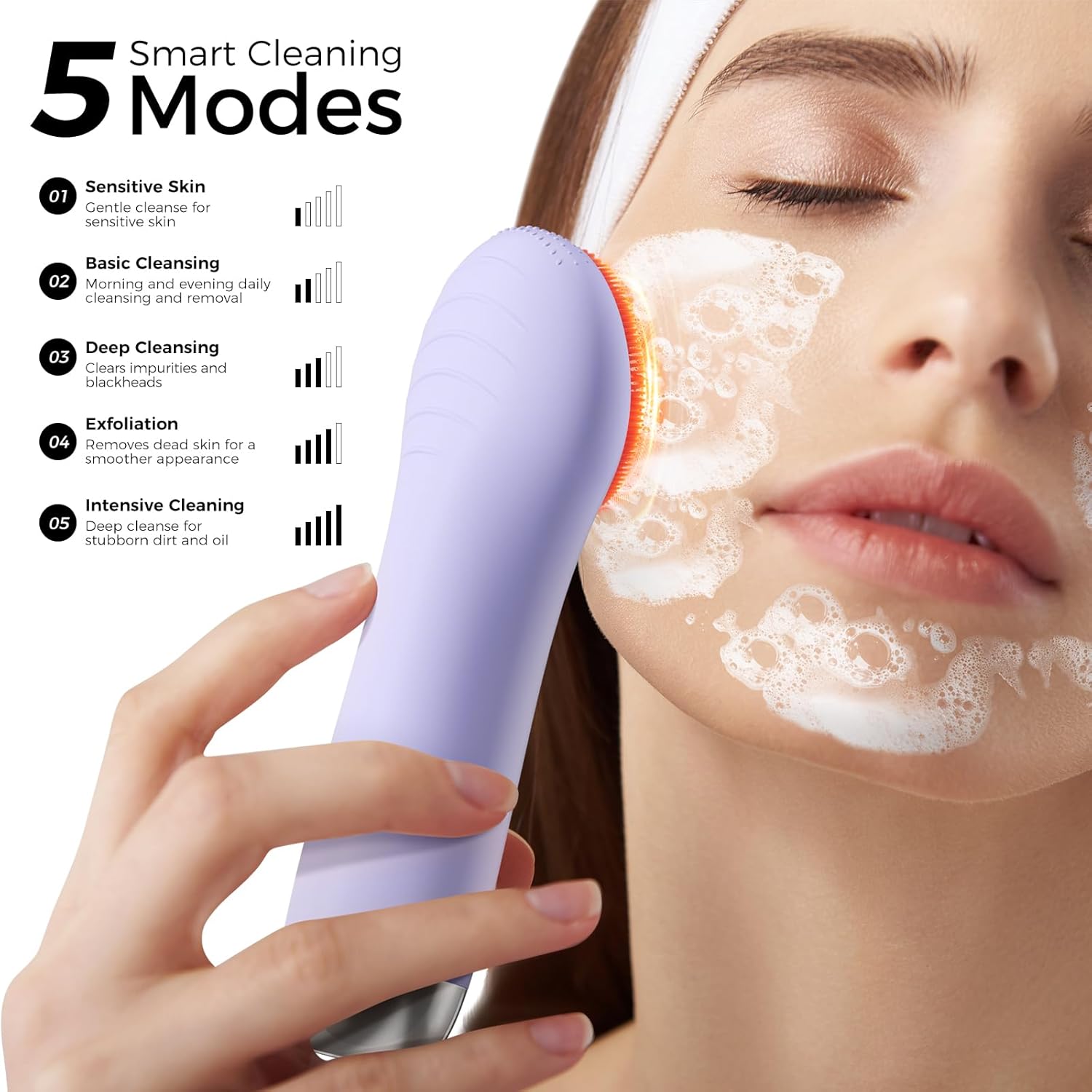 - 5-Speed Smart Customization for Every Skin Need: Total control at your fingertips! Easily switch between 5 intensity levels via a single button. Choose Speed 1-2 for sensitive/dry skin daily cleansing, Speed 3 for normal/combination balance, or Speeds 4-5 for oily/blemish-prone deep exfoliation. Tailor your session for gentle maintenance or invigorating renewal, making this face cleansing brush your universal skincare ally—day or night, for all genders and skin concerns.