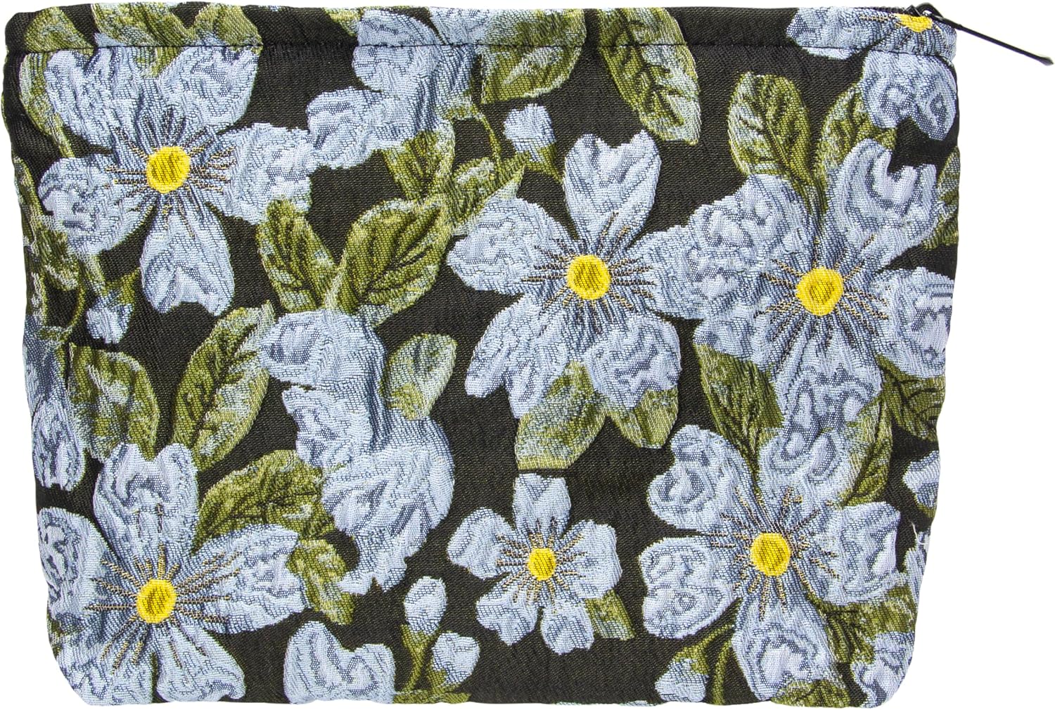 PAZIMIIK Makeup Bag Large Cotton Zipper Pouch for Purse Travel Canvas Make Up Organizer for Women Cosmetic,Brocade Flower Black