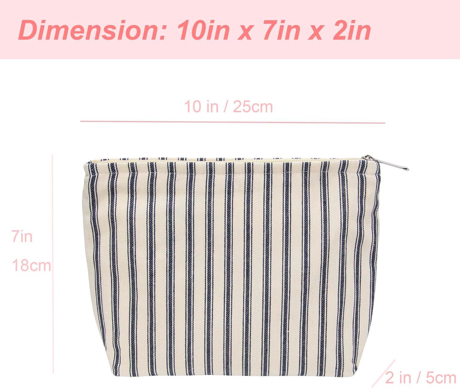 PAZIMIIK Makeup Bag Large Cotton Zipper Pouch for Purse Travel Canvas Make Up Organizer for Women Cosmetic,Vintage Stripe Navy Blue
