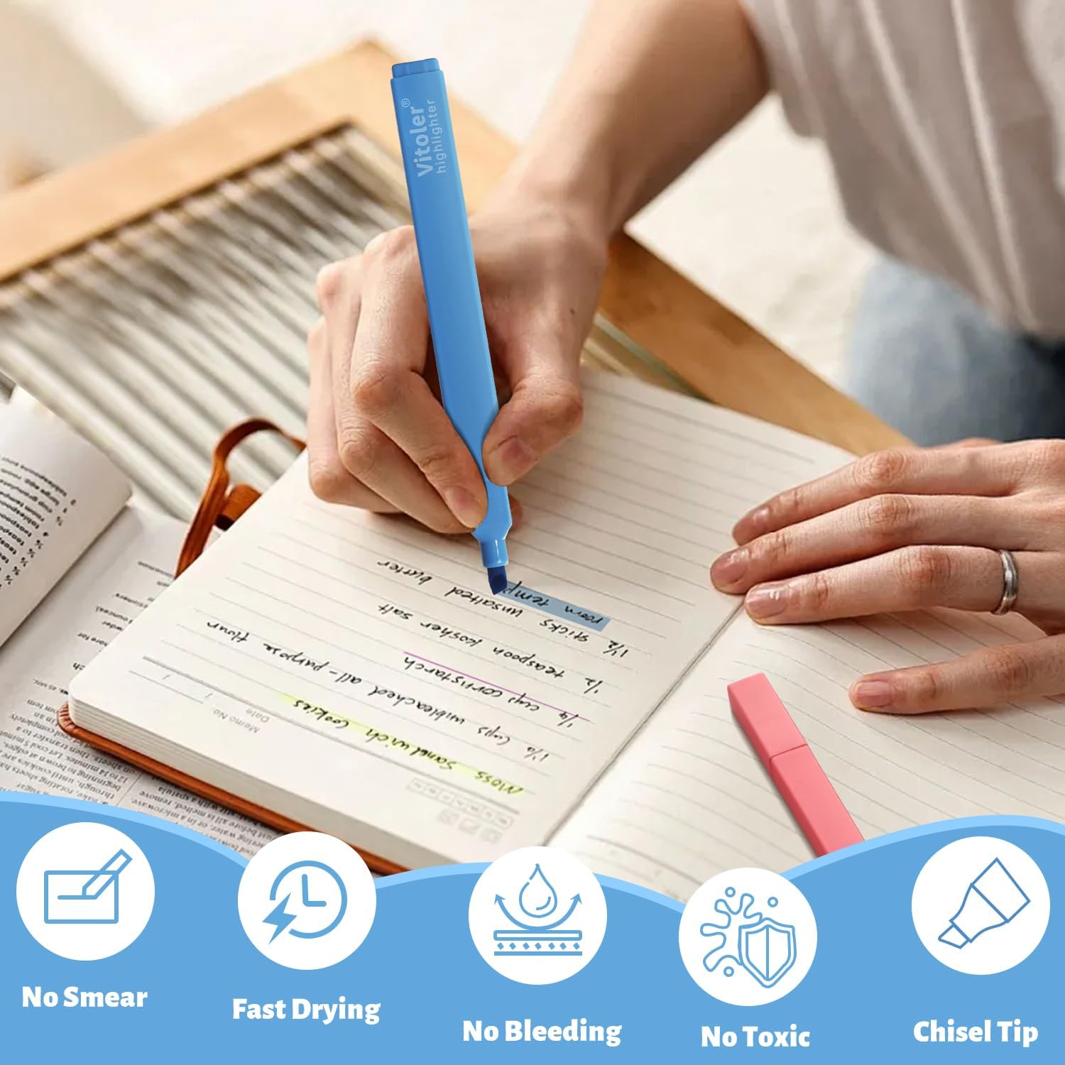 Vitoler Highlighters Assorted Colors,8pcs Chisel Tip Cute Highlighters, Cute High lighters No Bleed for School Office Supplies