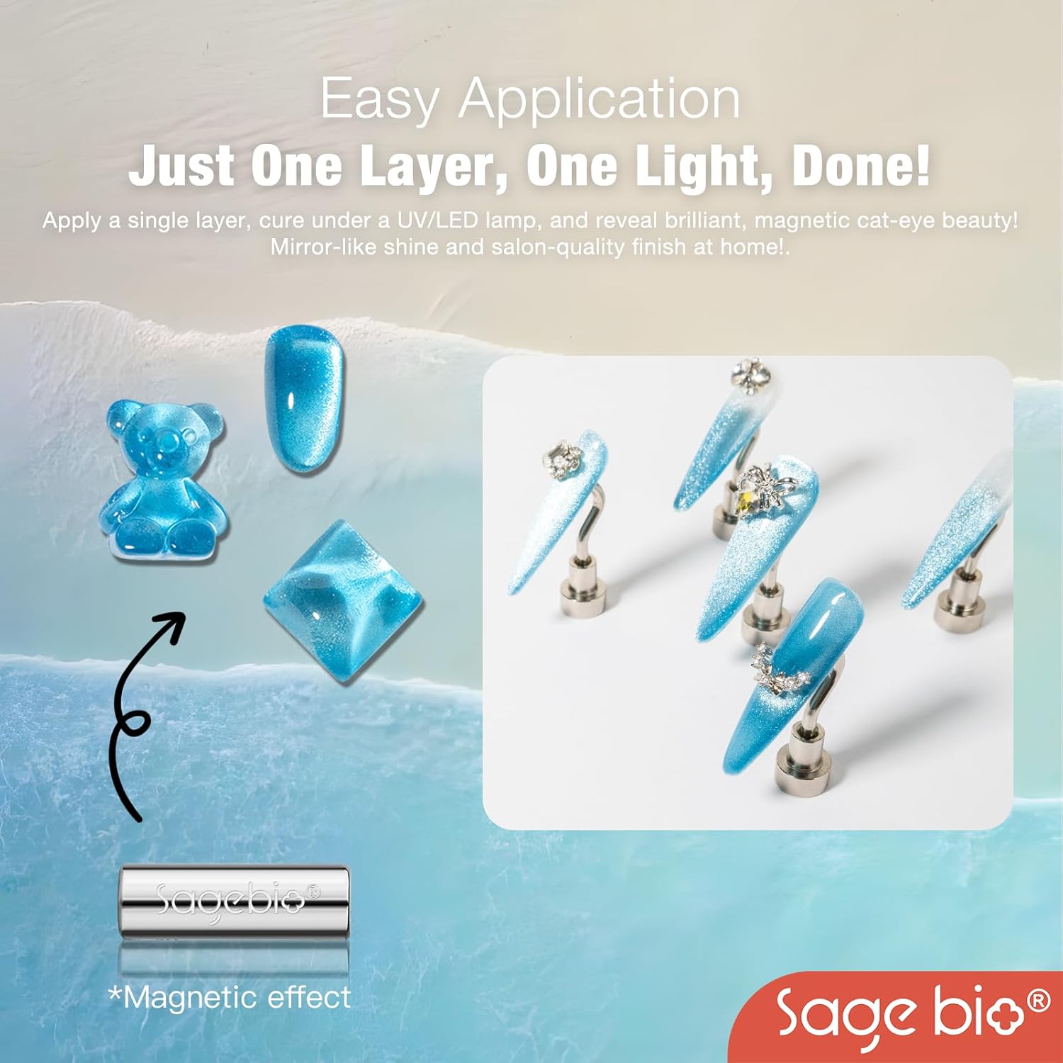 - Multifunctional Formula: SAGEBIOβs Cat Eye Gel Nail Polish combines both the base and color in one easy-to-use formula. No need for additional base or top coats, streamlining your nail art routine.