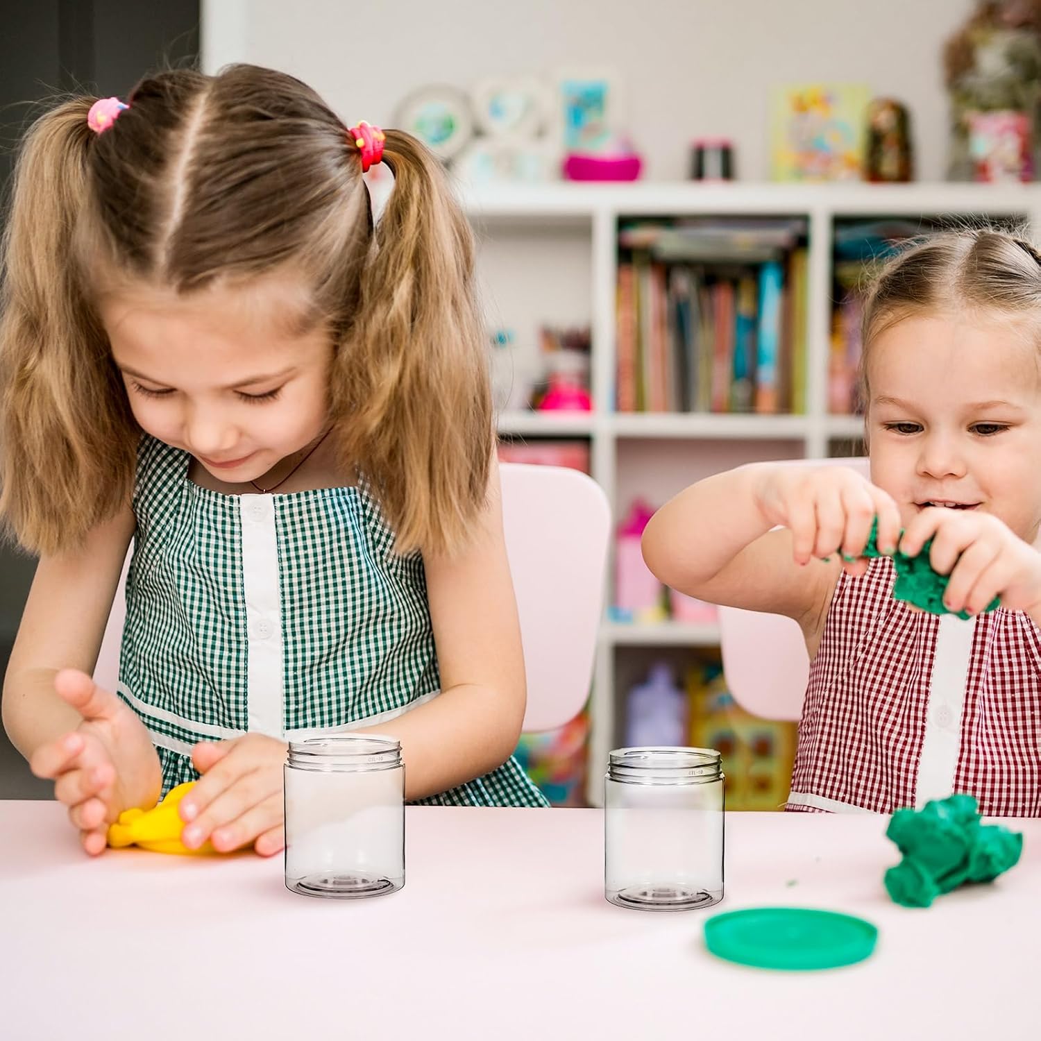 - Package Includes: 100 pieces of 10 oz plastic containers with lids, each small plastic jar is about 2.8 inches/ 7.1 cm in diameter, about 4.02 inches/ 10.2 cm tall, and holds 10 oz, each small plastic jar weighs only 15 grams; The large quantity is convenient for your multiple purposes, suitable for packing and carrying cosmetics at home or travel