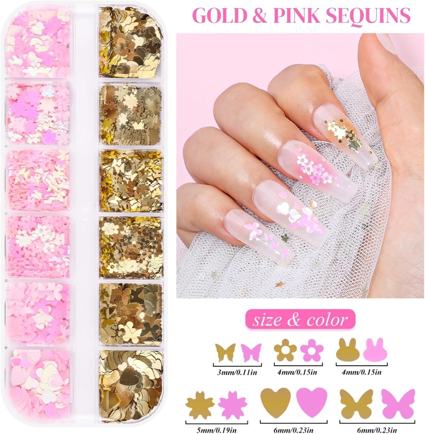 - Nail Sequins Decoration Kit: You'll get 5 boxes of mixed-shaped sequins (butterflies, hearts, stars, moons, flowers, diamonds, etc.), 1 pair of precision tweezers, and 1 pc of dual-end nail brush/dotting penโeverything you need for stunning nail art!