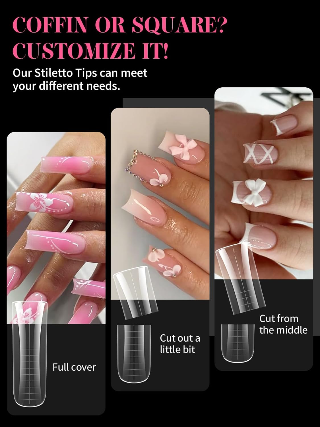 - 【Nail Form Mold with 15 Sizes】150pcs stiletto clear dual forms for poly nail gel offers 15 different nail sizes , and each size of long nail tips is separated by a small grid, a total of 15 grids, so they're easy and convenient to choose the suitable size to meet your nail's need.