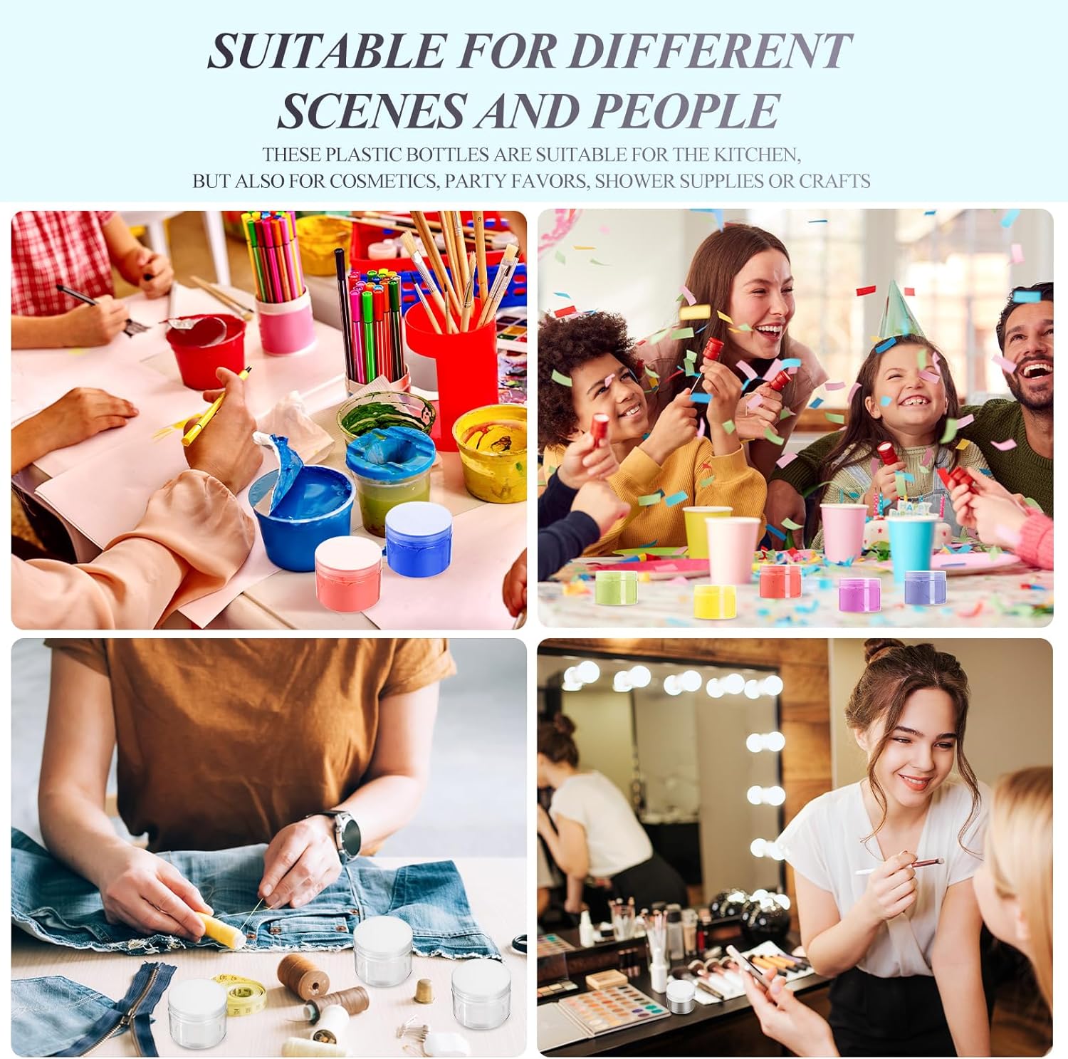 - Product Size: each wide-mouth plastic containers jars measure 7.1 cm/ 2.8 inches in diameter, 6.9 cm/ 2.7 inches in height wide, the volume is 8 oz; These are empty jars, good for meal preparation, condiments, DIY crafts, creams, butters, lotions and others