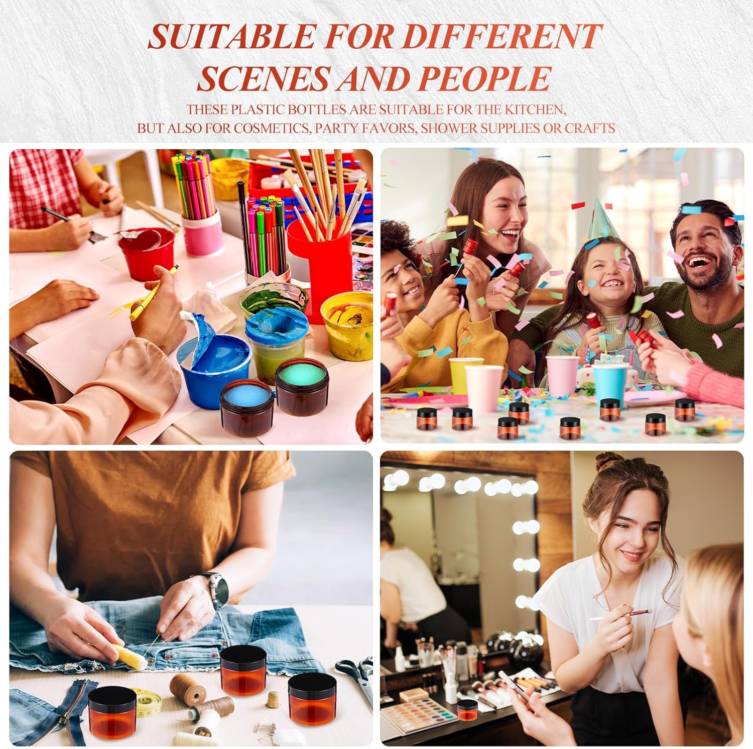 SATINIOR 24 Pieces Empty Clear Plastic Jars with Lids Round Storage Containers Wide Mouth for Beauty Product Cosmetic Cream Lotion Liquid Butter Craft and Food(Amber Lid,2 oz)