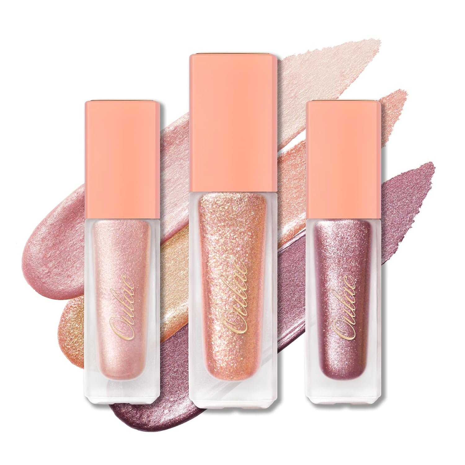 Oulac Liquid Glitter Eyeshadow Liquid Shimmer Eyeshadow Liquid Eyeliner Non-sticky One-Swipe Coverage with Quick-Drying Crease-resistant Formula Set 1