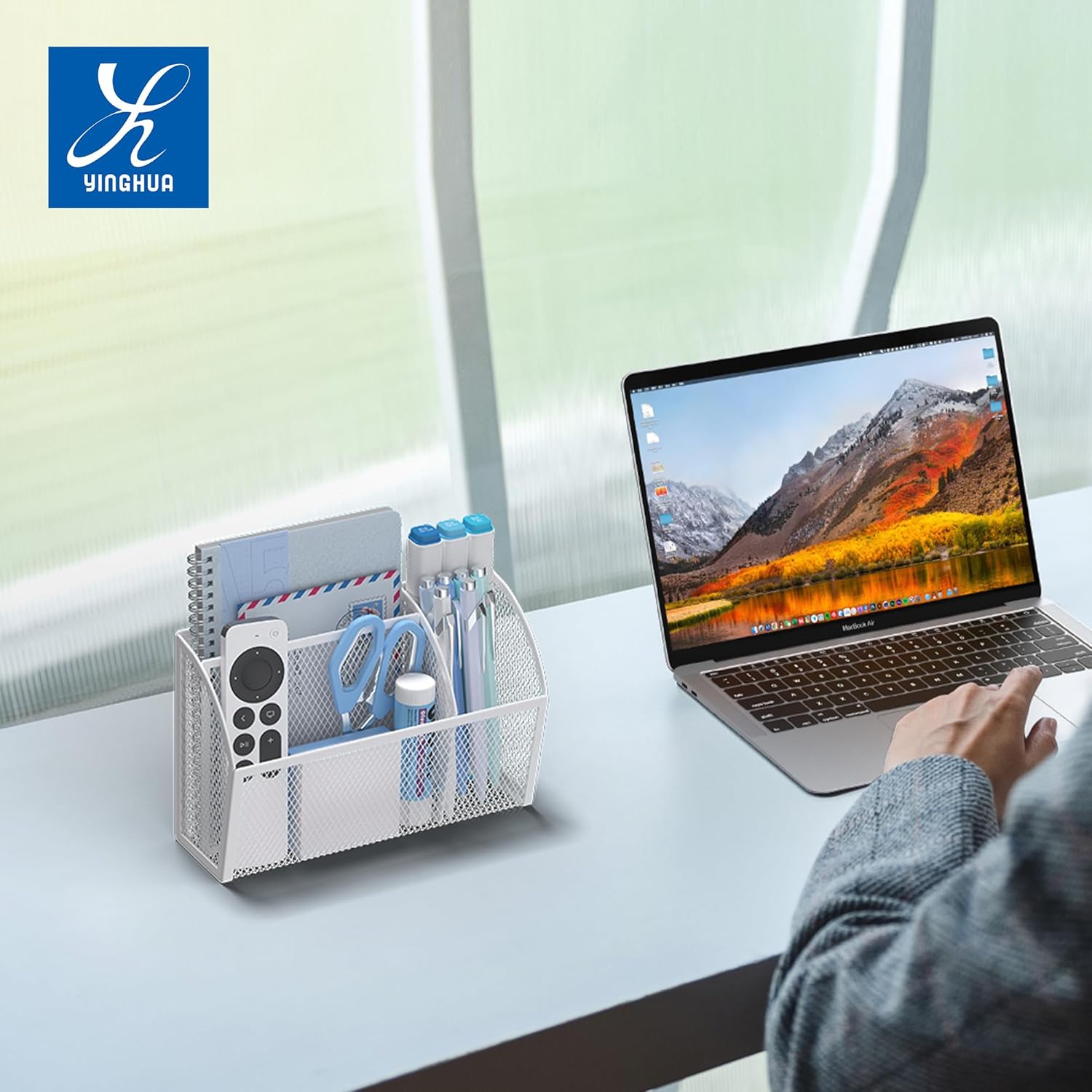 - Strong Magnetic Grip for Multi-Surface Use β This White 3-compartment metal mesh desk organizer securely attaches to whiteboards, refrigerators, lockers, and other magnetic surfaces with its powerful built-in magnets. The sturdy hold keeps your pens, pencils, and small essentials in place while freeing up desk space. Perfect as a pen holder for desk, office organizer, or classroom pencil holder