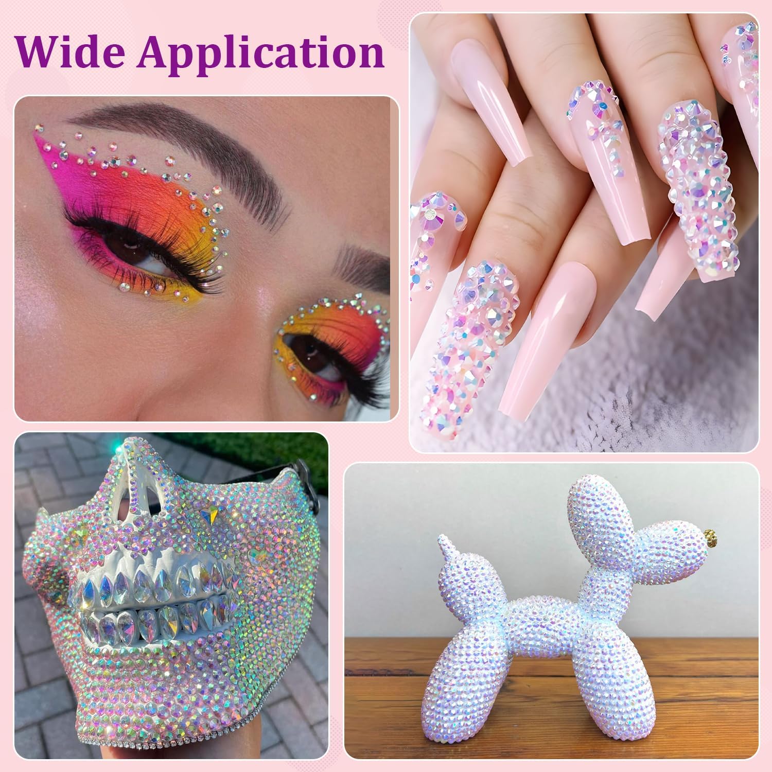 - WIDE APPLICATION -- These sparkling iridescent resin rhinestones are perfect for creating dazzling looks. Use them for bedazzling crafts like shoes, tumblers, mugs, bottles, phonecases, bags, glasses, hats, masks, clothing, clothes or nail art and more