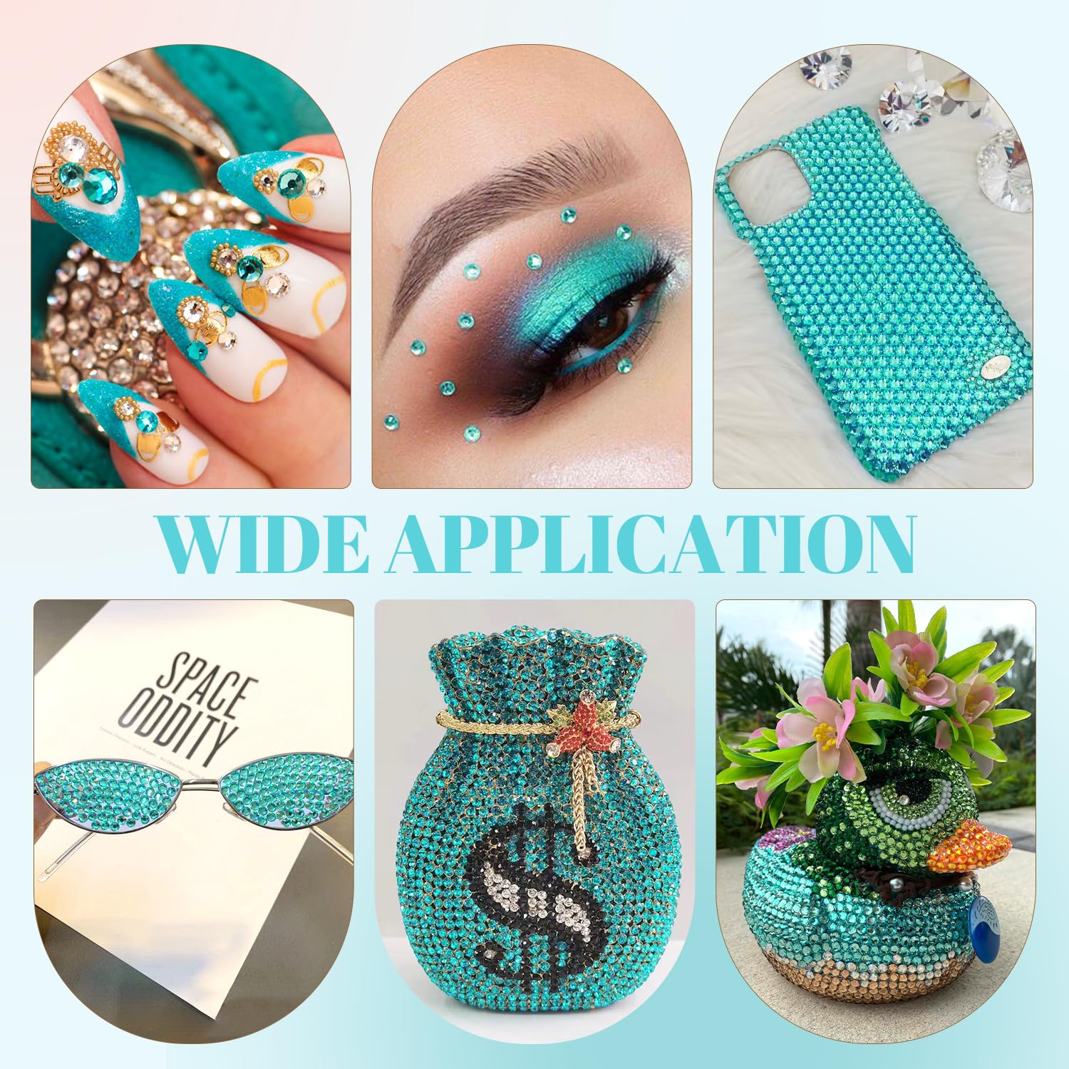 - WIDE APPLICATION -- These sparkling iridescent resin crystals are perfect for creating dazzling looks. Use them for bedazzling DIY crafts like shoes, tumblers, mugs, bottles, phone cases, popsockets, scrapbooks, photo frames, diamond paintings, greeting cards, bags, glasses, guitars, keychains, hats, masks, hair clips, bracelets, wristbands, clothing, wedding dresses, and more. Apply it to what you want to bling!