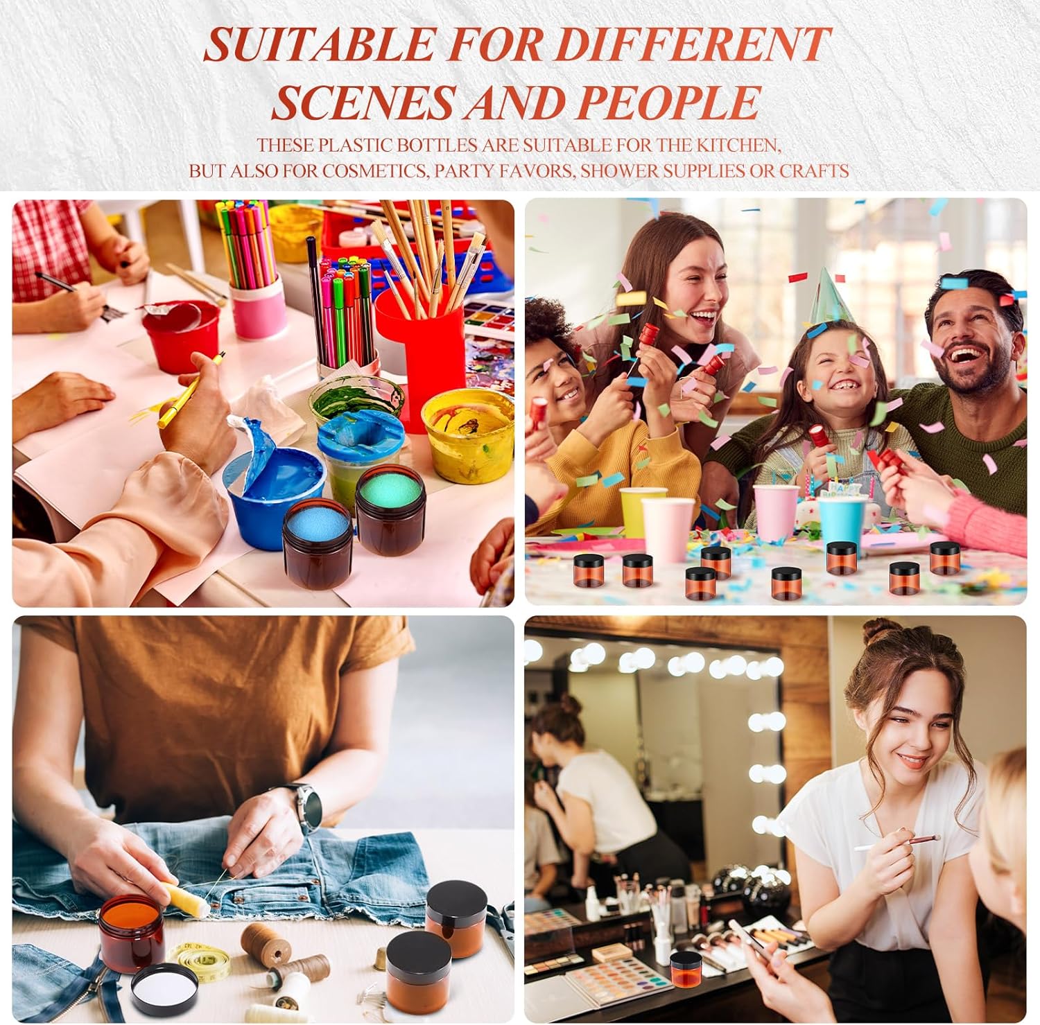 SATINIOR 36 Pieces 4 oz Plastic Jars with Lids Wide Mouth Airtight Reusable Container Acrylic Cosmetic Small Jars for Lotions Ointments Travel Toiletries Creams Make up Storage(Amber)