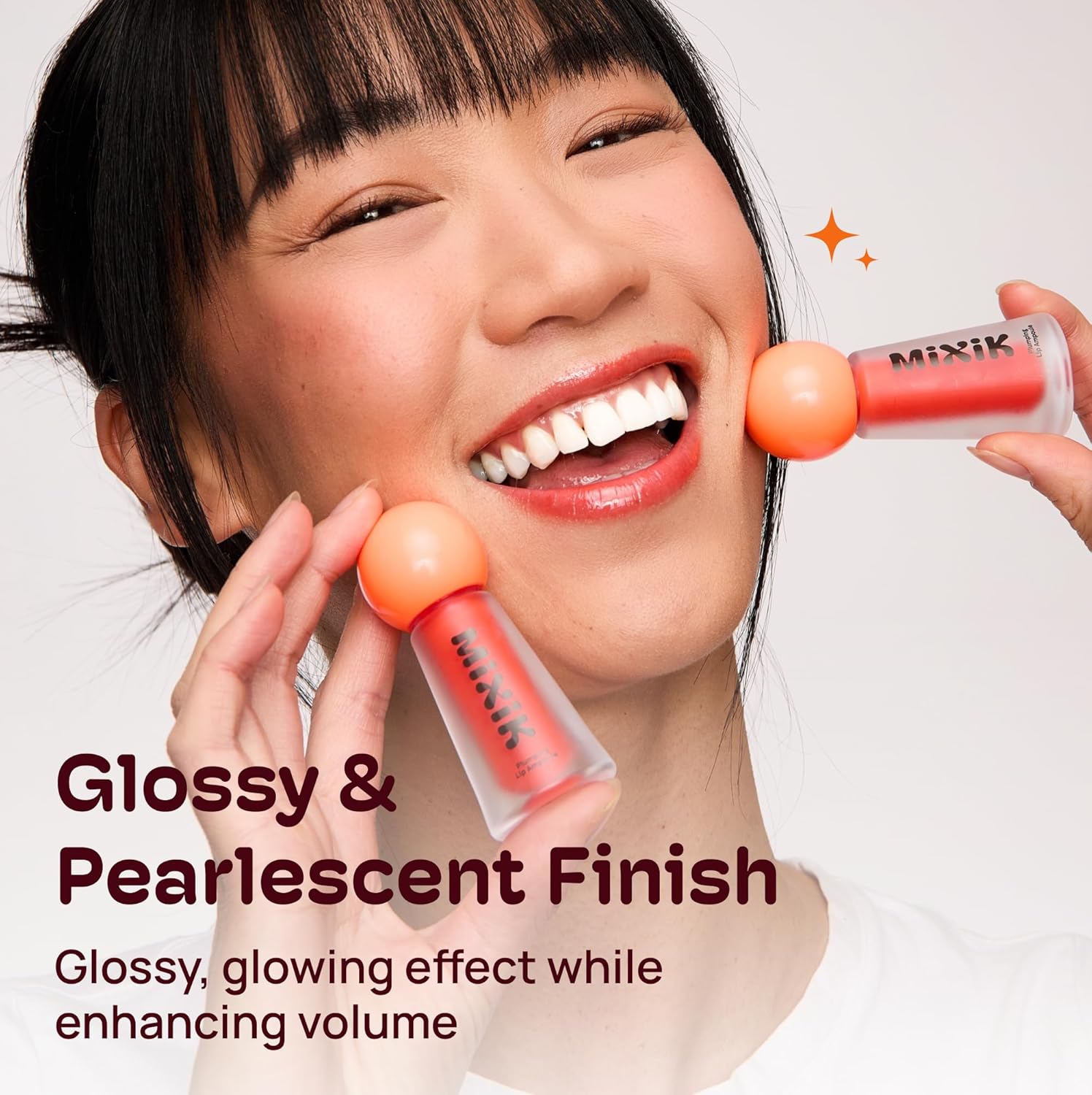 MIXIK Plumping Lip Ampoule, Hydrating Lip Gloss Plumping Ampoule made with Shea Butter & Argan Kernel Oil leaving Lips Plump, Smooth and Glossy, promotes Vibrant High-Gloss Plump Lips (Poppy Plump)