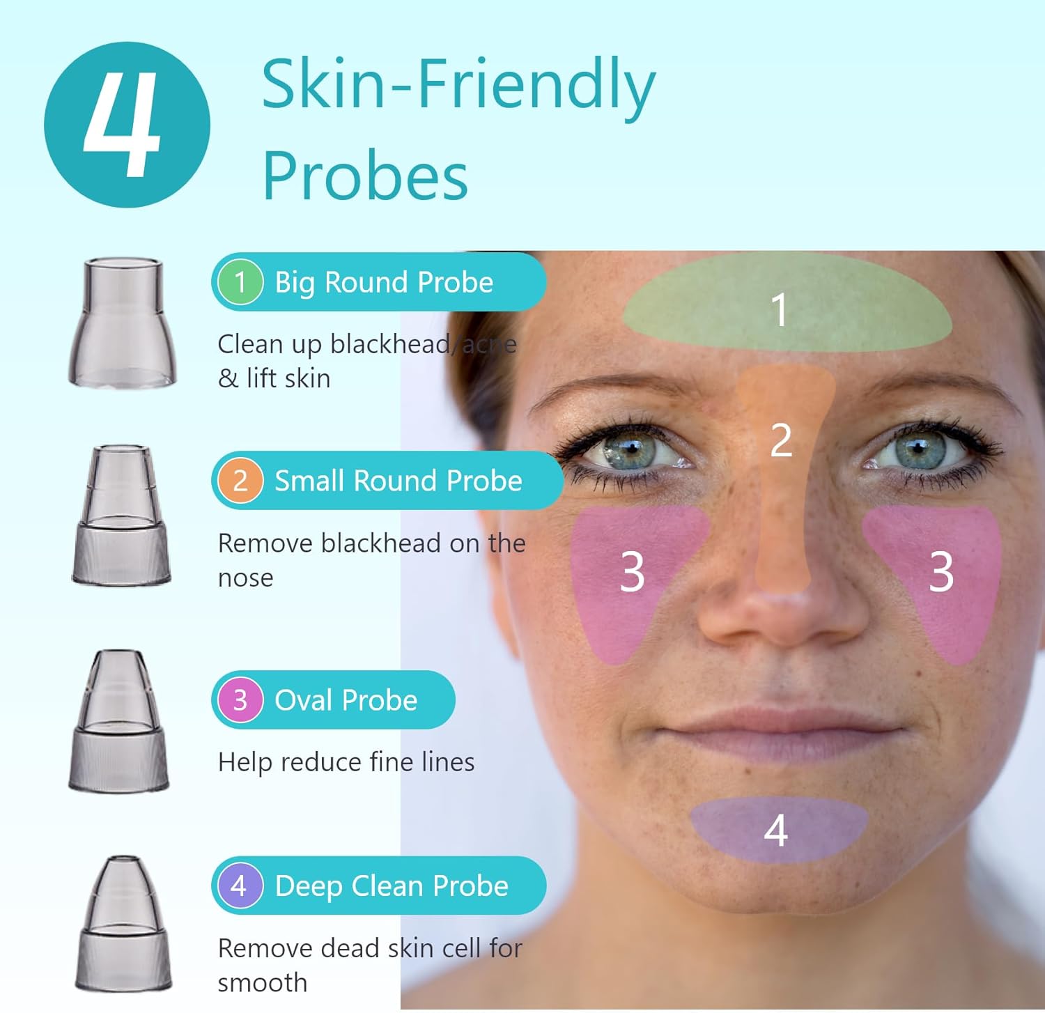 - 【 Blackhead Remover Tools 】Our upgraded blackhead vacuum provides powerful yet gentle deep facial cleansing. It effectively removes blackheads, whiteheads, dead skin, acne,oil and cosmetic aresidue.