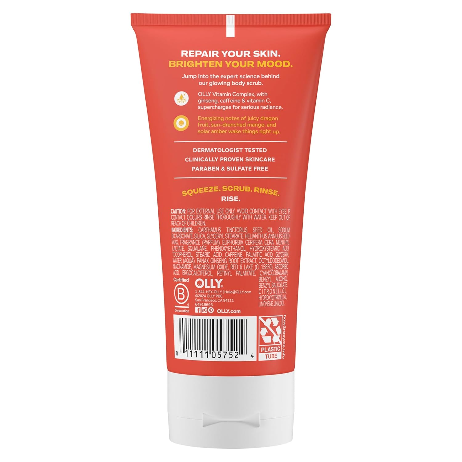 OLLY Bright Body Scrub with Ginseng, Caffeine & Vitamin C– Nourishing Cleanser for Skin Exfoliation, SkinBarrier Repair, Citrus Currant Scent, 6 oz