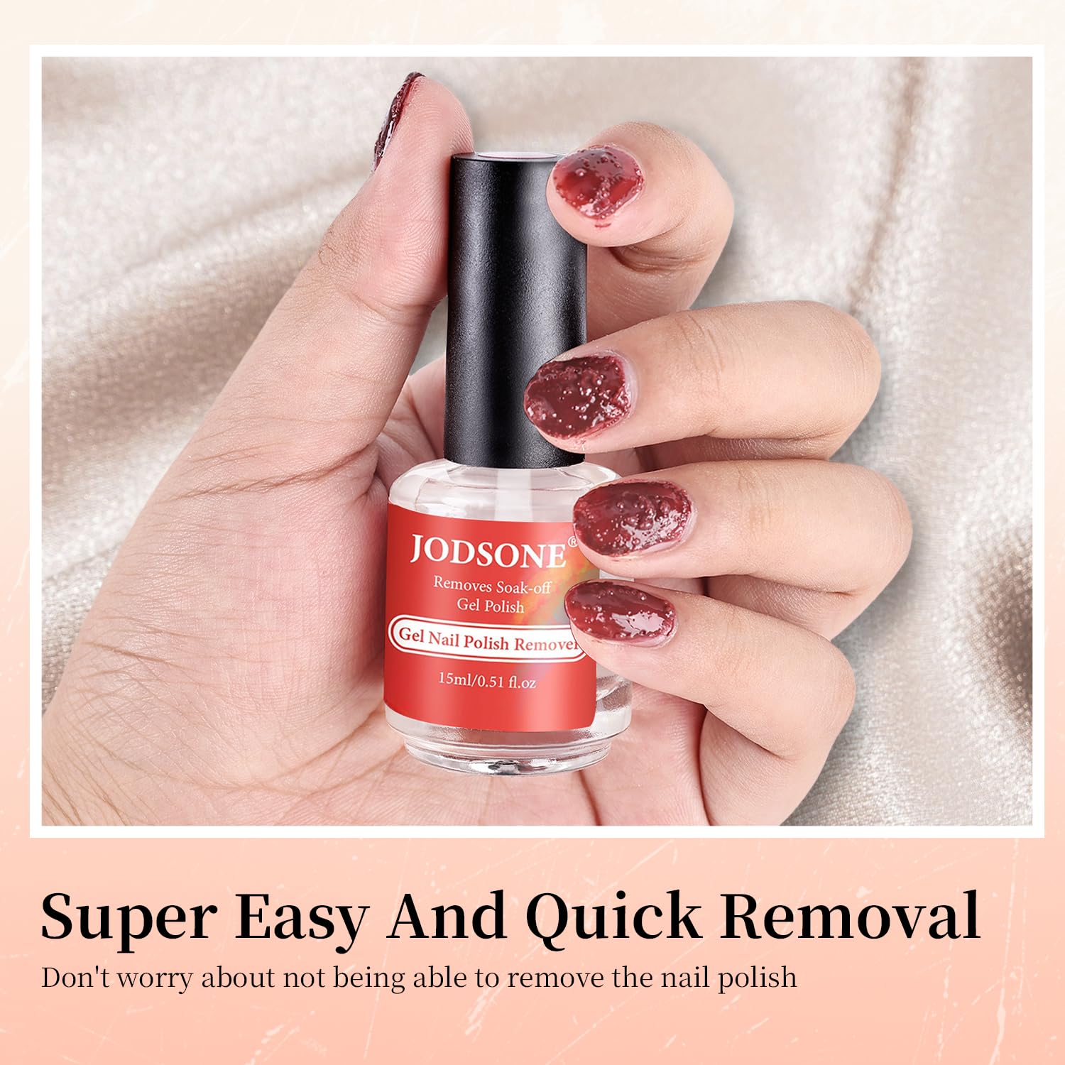 - JODSONE Professional 5-in-1 Set: Include a 15ml gel nail polish remover, a 15ml cuticle oil, a 15ml latex tape liquid, 2 sanding strips, 2 steel pushers, complete with professional tools, remove gel nail polish at home without going to the salon