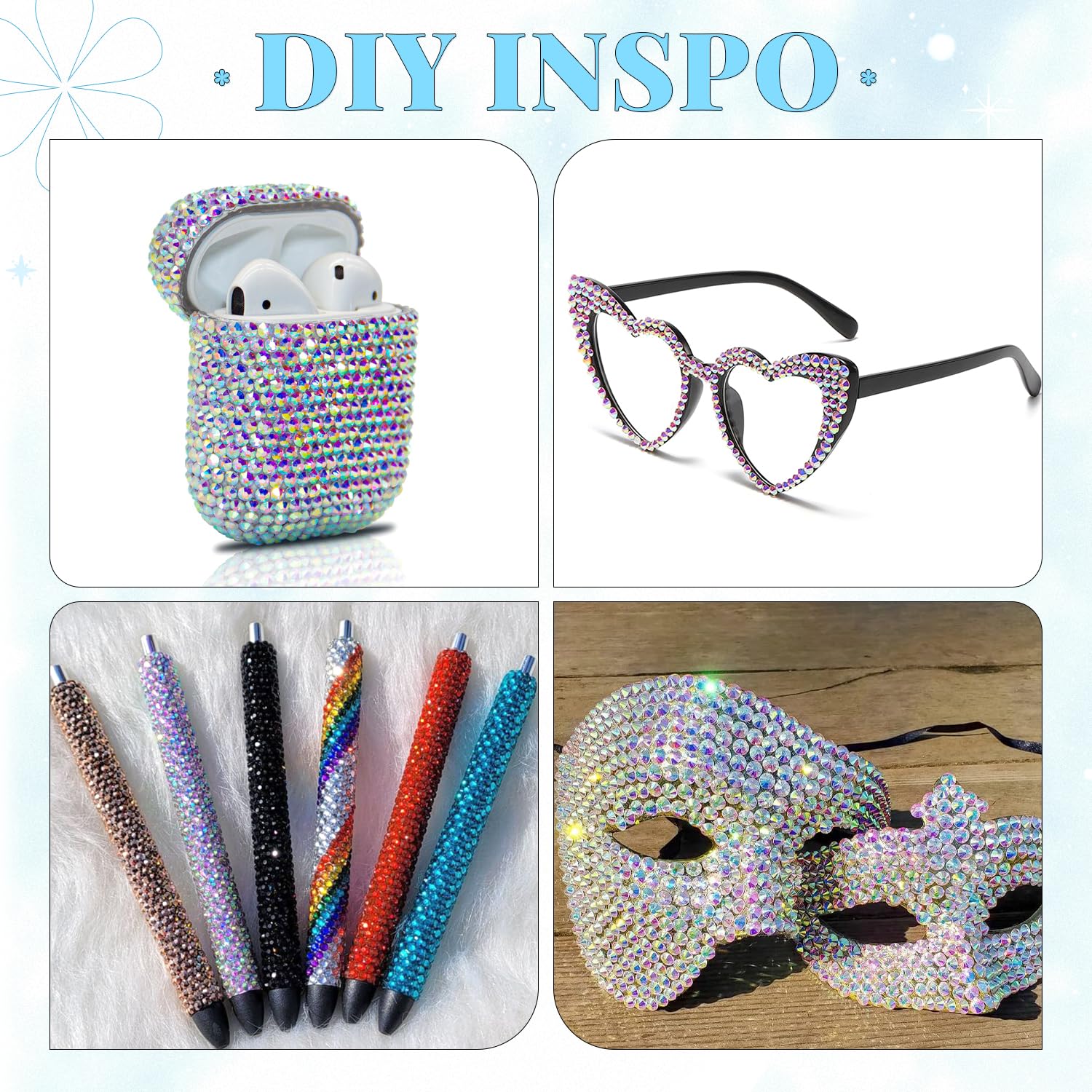 - WIDE APPLICATION -- These sparkling iridescent resin rhinestones are perfect for creating dazzling looks. Use them for bedazzling crafts like shoes, tumblers, mugs, bottles, phonecases, bags, glasses, hats, masks, clothing, clothes or nail art and more