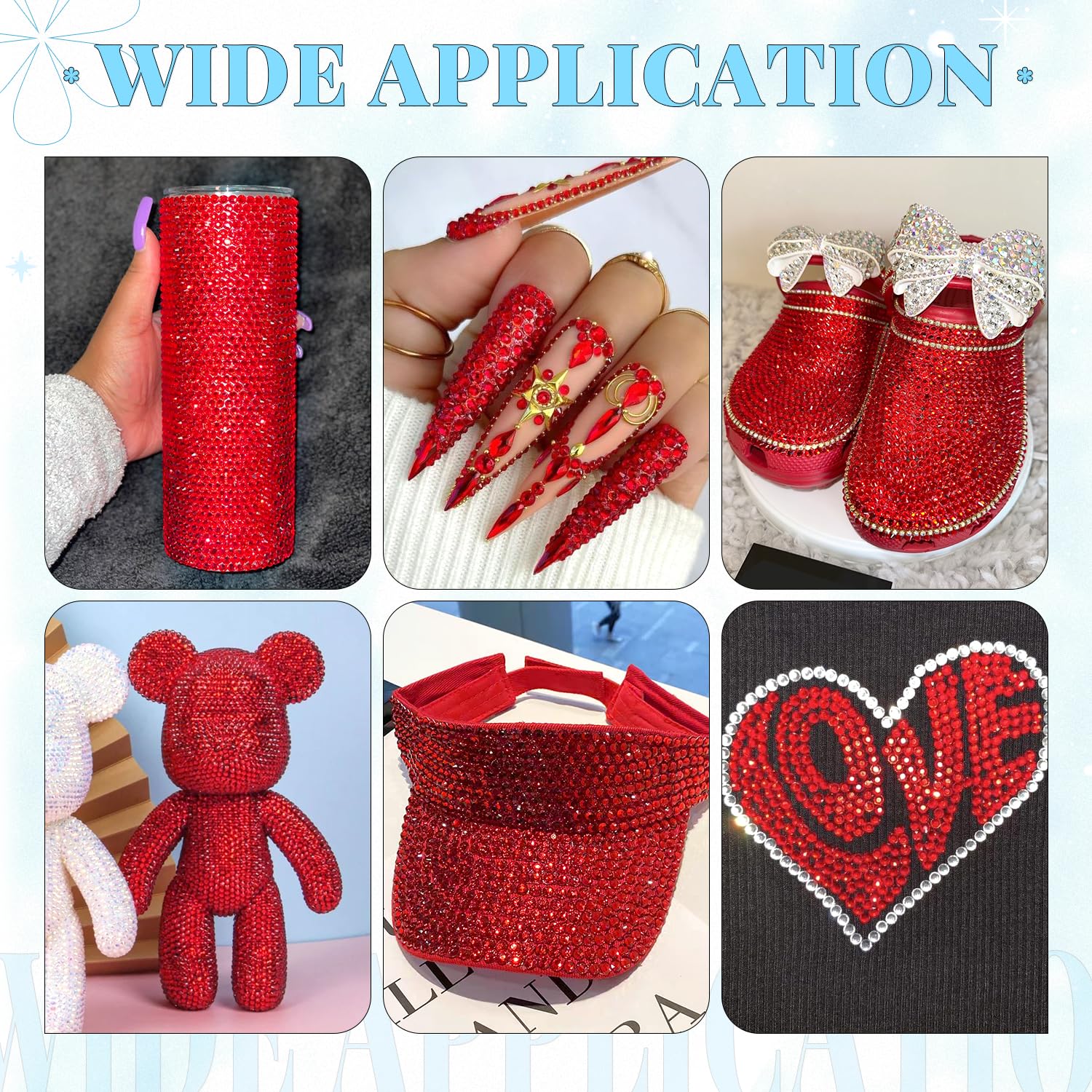 6000Pcs Resin Rhinestones for Bedazzling with 3Pcs B7000 Jewelry Glue, 1 Box Red Flatback Rhinestones for Crafting Crafts DIY, Crystals Gems for Clothing Shoes Tumblers Nail Art Makeup