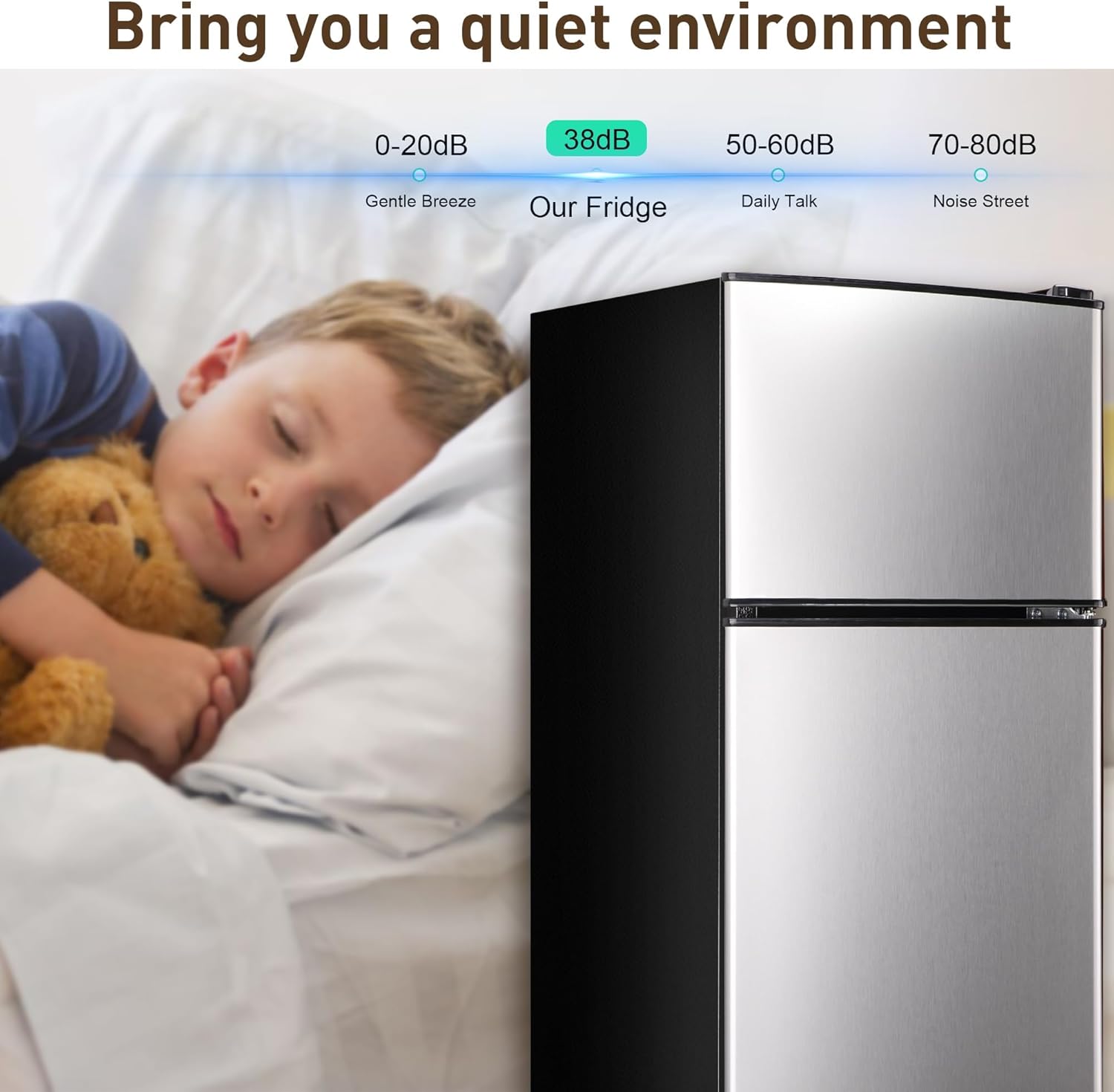 - 【Quiet & Eco-Friendly Operation】Enjoy a peaceful environment with this mini fridge refrigerator's advanced noise-reducing technology. Designed for quiet operation, it minimizes disturbance in dorms, offices, or apartments. Additionally, its energy-efficient design helps reduce electricity consumption, making it a sustainable choice for eco-conscious users.