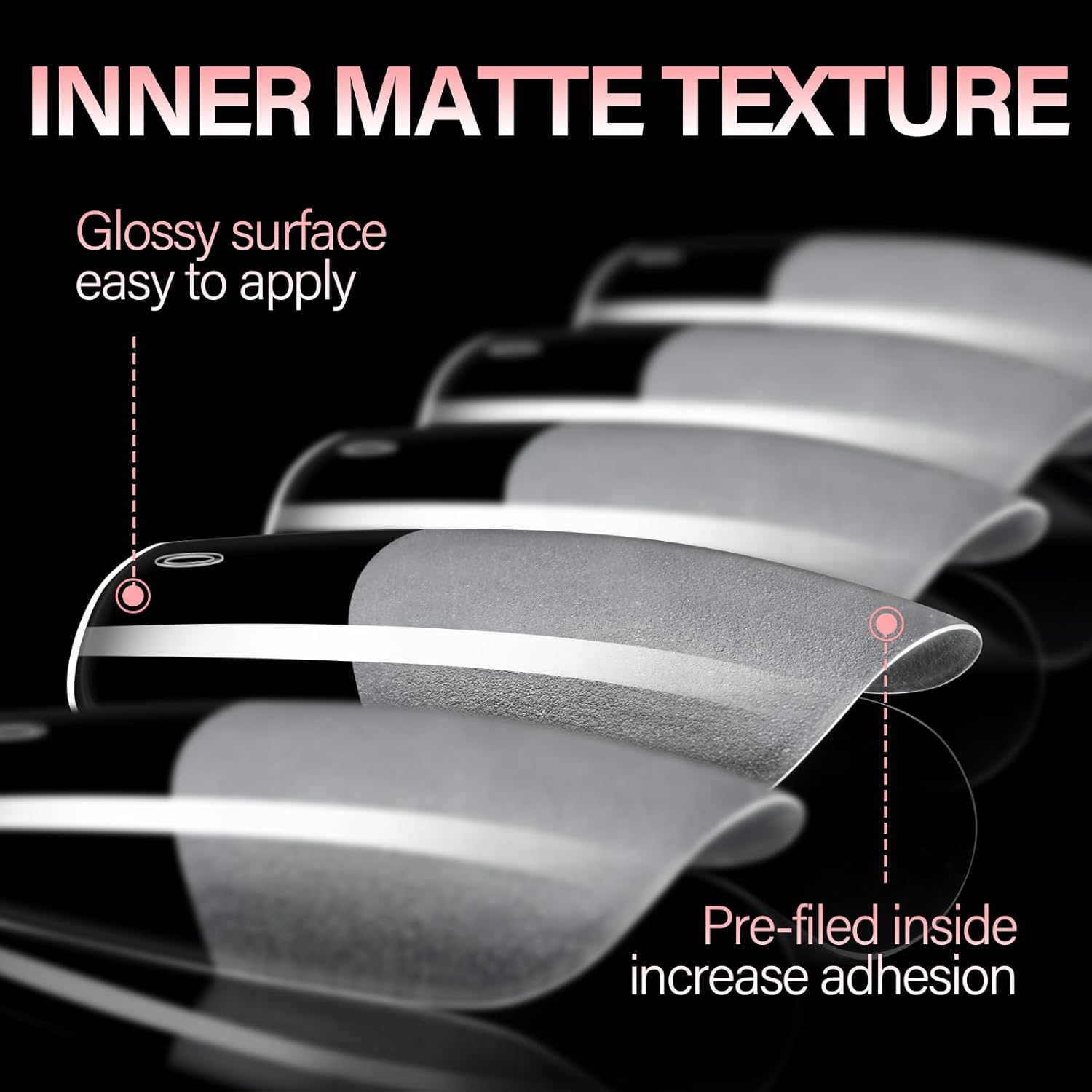 - Upgraded Half Matte Coffin Nail Tips: Our full cover half matte false nail tips are made of high-quality materials, breathable, lightweight and durable, making your nails look more natural and beautiful. You can easily extend your nails with AILLSA pre-buff gel nail tips!Half matte texture design, which can increase friction and adhesion.