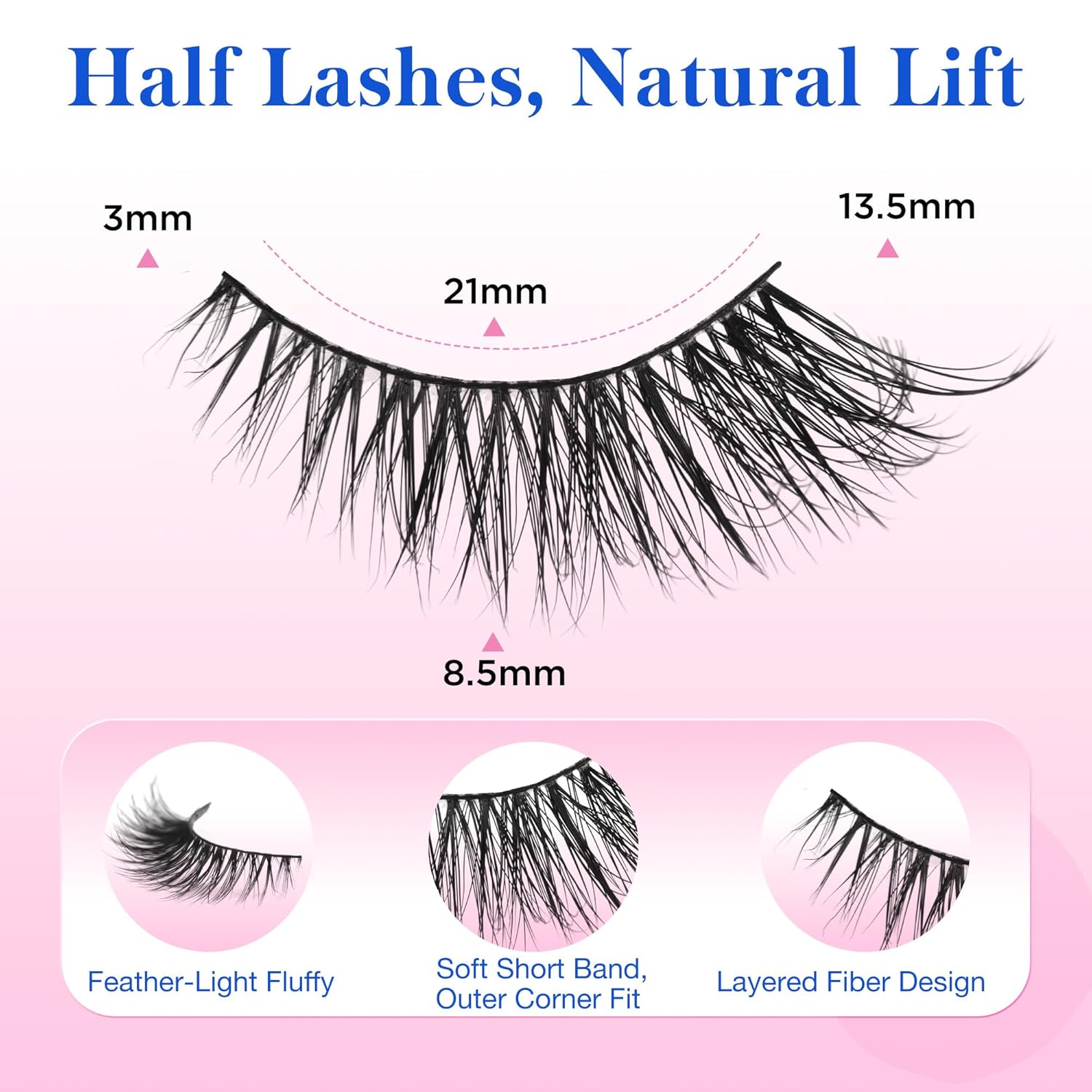 - Versatile Style for Any Eye Shape Create a dramatic half lashes cateye by lifting outer lashes and layering with natural ones for a fuller half lash look, perfect from daily wear to party glam