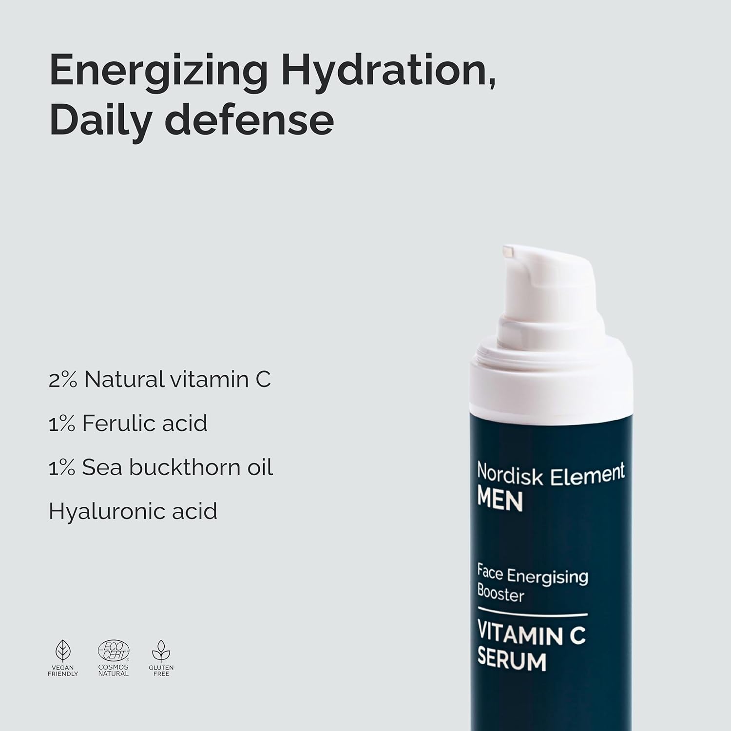 Nordisk Element Vitamin C Face Serum for Men, Anti-aging formula, Improve Appearance of Dark Spots, Tone, Fine Lines & Wrinkles, with Natural Vitamin C & Hyaluronic Acid, 1 Fl Oz
