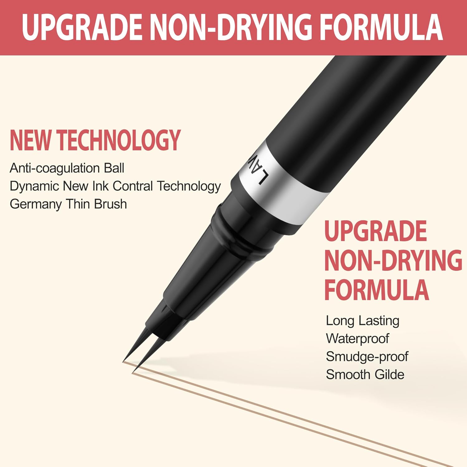 - Waterproof Liquid Eyeliner: LAVONE waterproof liquid eye liner ultra precise tip is flexible and easy to use. Every stroke is unbelievably fluid for a defined finish, the eyeliner pen is glides on smooth. The eyeliner pencil formula is long-lasting, smudge-proof and waterproof, keep in your brows up to 24hours.