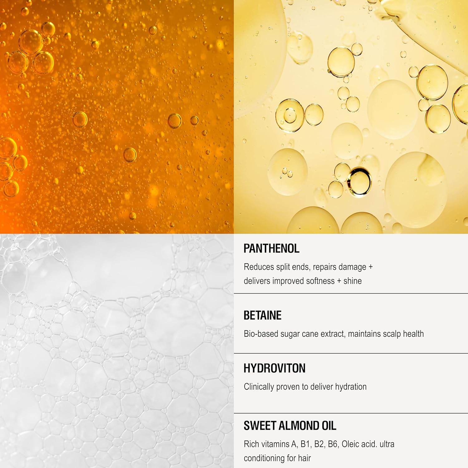- Hydra-Restore Hair Conditioner which works wonders for rejuvenating damaged or dry hair for softer, smoother and shinier hair. Packed with a moisturizing blend of Vitamin B5, Betaine, Hydroviton and Sweet Almond Oil it helps to strengthen and hydrate strands whilst also improving scalp health