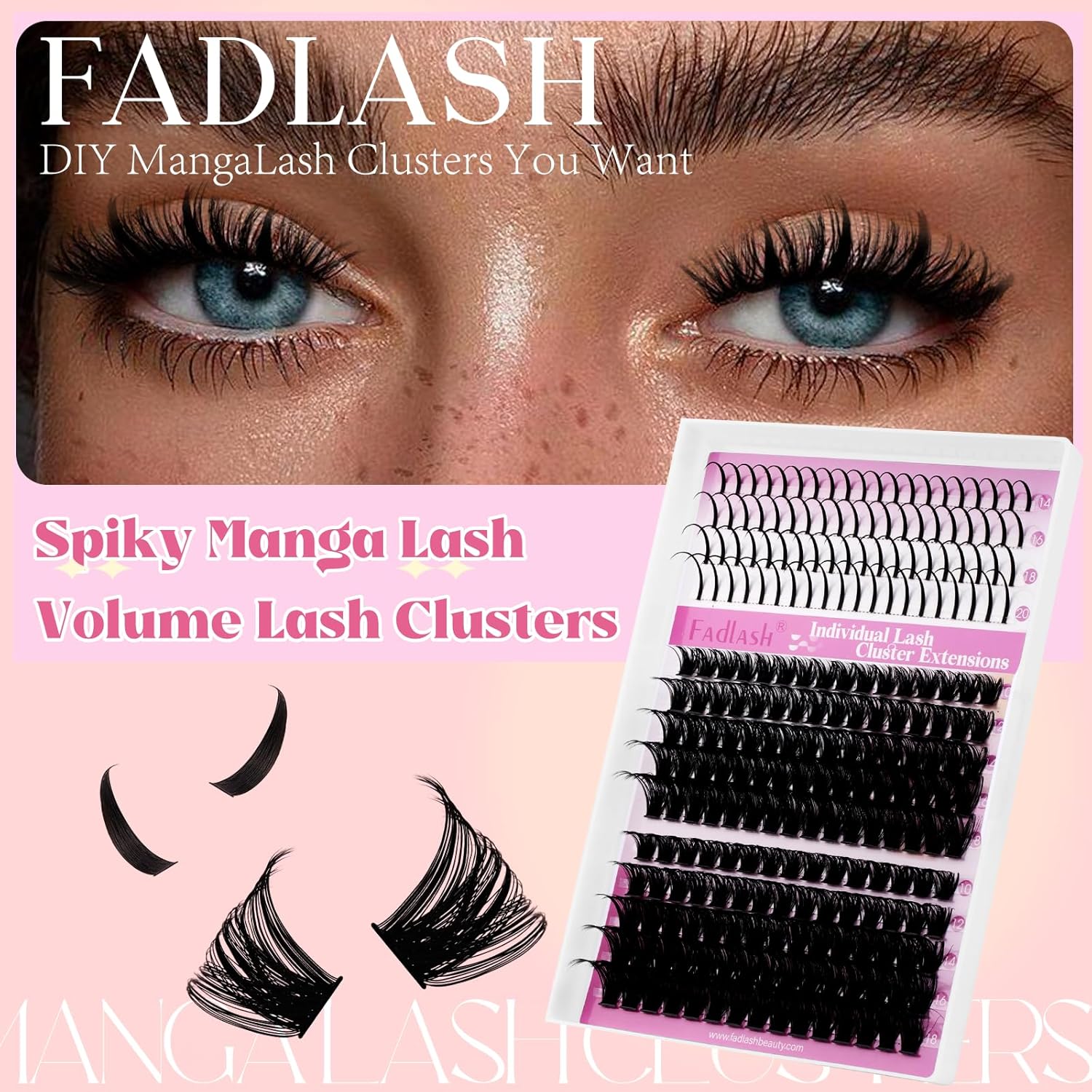 - Lash Clusters and Spikes EyeLash Extension: Spiked fairy cluster false eyelashes add a sensual effect to thick eyelashes. If you want to extend your eyelashes, the latest combination of D-curly individual Lashes clusters and lash clusters with spikes will be your ideal choice! Be the master of your own eyelashes!
