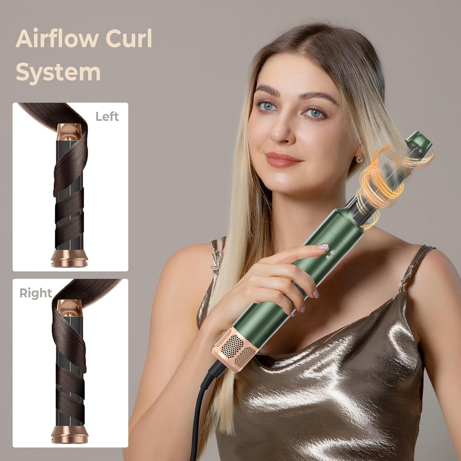 - 7-in-1 AIR HAIR STYLER WRAP SET: The hair dryer brush with diamond is equipped with a powerful brushless motor, our blow dryer brush contains 1 x hair dryer head, 1 x narrow dryer head, 1 x hair dryer with diffuser, 2 x air curling iron wrap, 1 x straightening brush, , 1 x round brush, the air styler wrap that makes fast curling, straightening, drying, volumizing, massaging. our brush hair dryers for women lightweight design and 360Β° swivel cord, no need to worry about tangled cords.