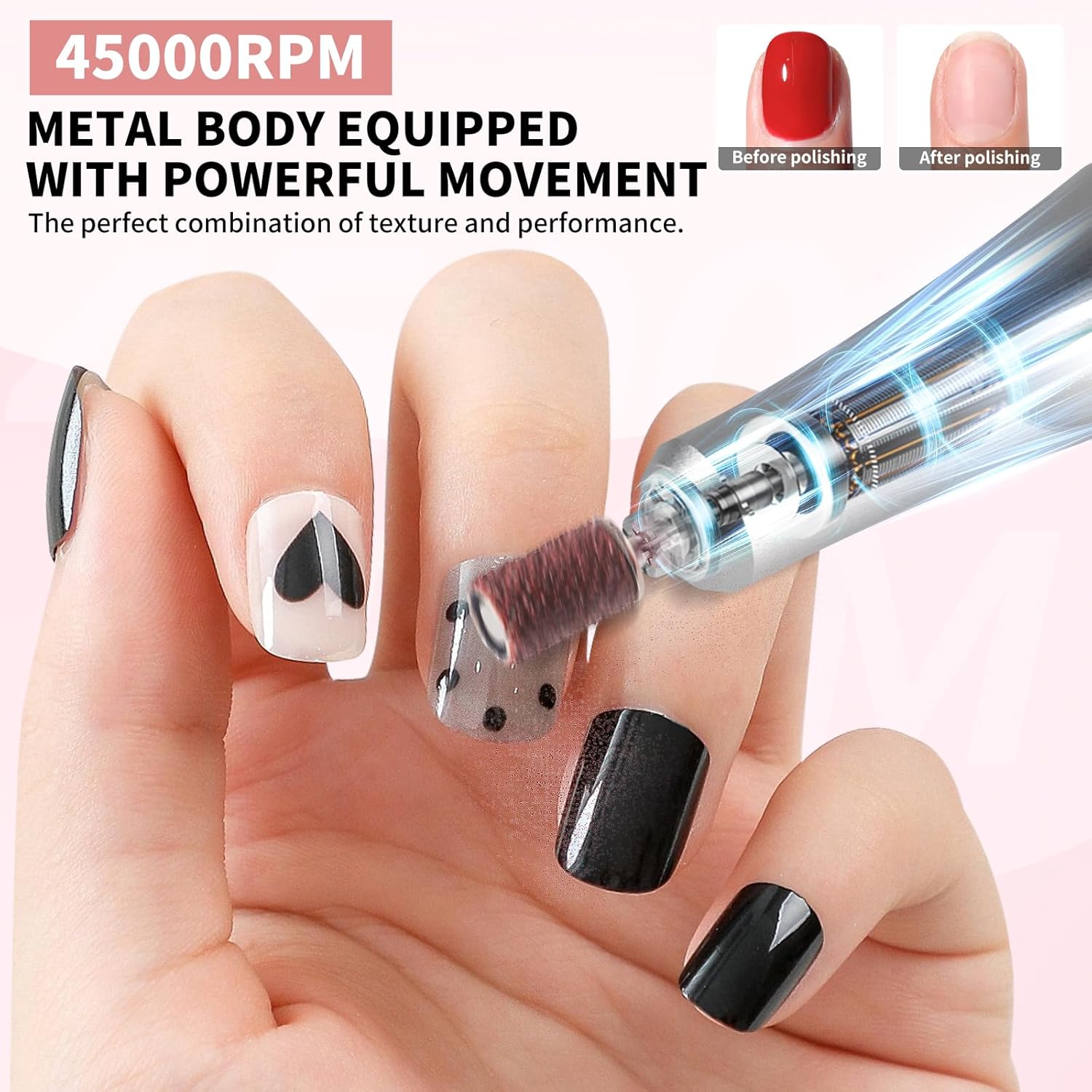 - 【High Speed up to 45000RPM】Our electric nail drill is equipped with a powerful upgrade motor bearing, which enables it working smoothly at a high and adjustable speed (0-45000RPM), just rotating the switch to choose the speed you need, easy to use and safe to control. It is an ideal nail drill machine for both professional technicians in-salon or beginners DIY at home.
