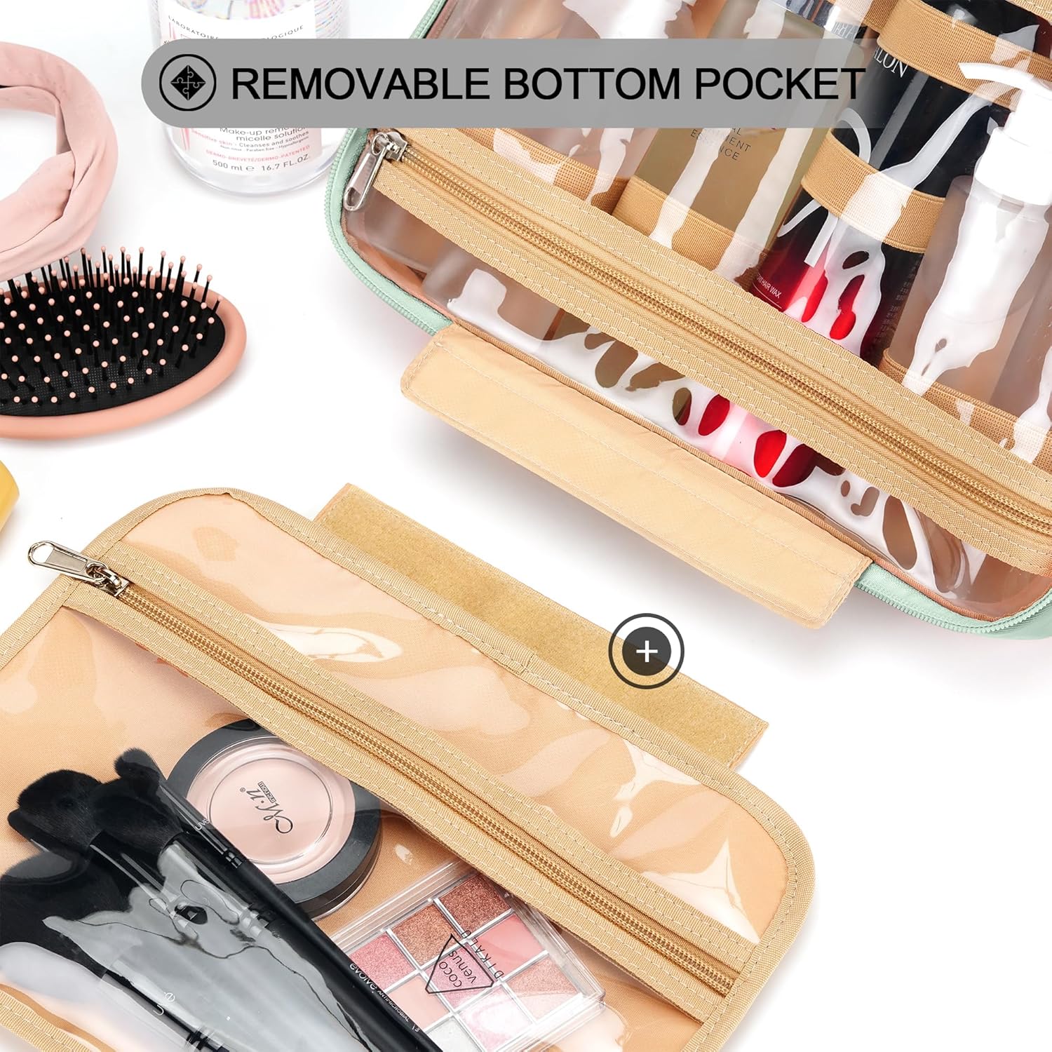 Travel Hanging Toiletry Bag for Women, Cruise Ship Essentials, with Jewelry Organizer, Extra Large Makeup Dopp Kit, Waterproof Cosmetic Bags, Toiletries Kit Set with Trolley Belt, Green