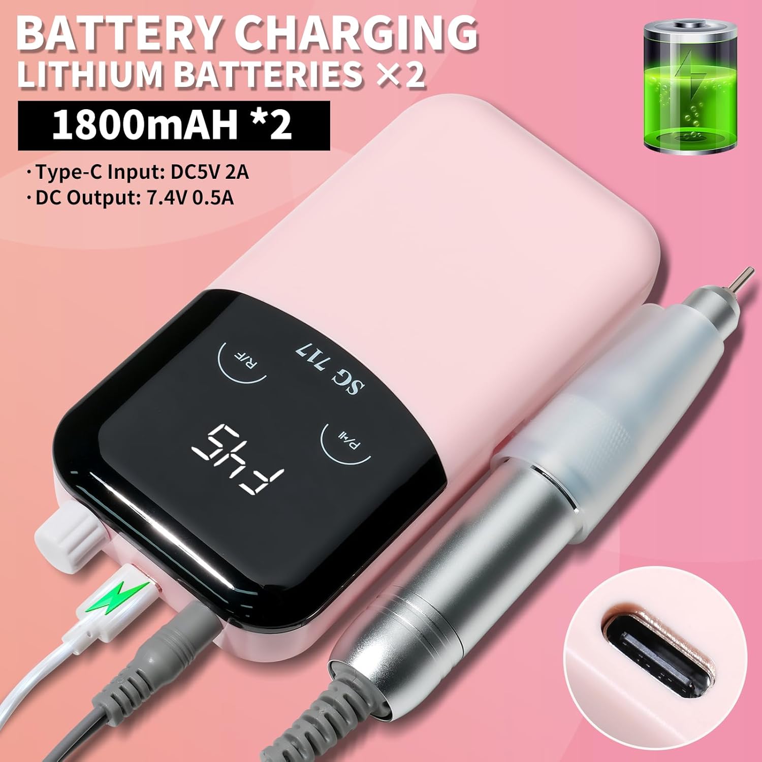 - 【Rechargeable Nail Drill】Our electric nail filer comes with 2*2000mAH battery, which can provide 10-12 hours straight working time only charges for about 2-3 hours.With the LCD screen, you can easily know the information such as rotating speed RPM, rotating direction and battery power. And makes it so much easier to us