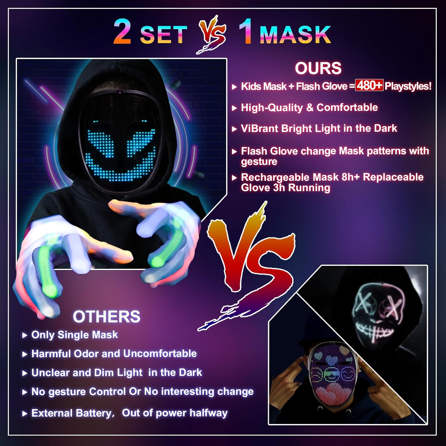 Led-Mask Gloves Halloween-Costumes For Kids Men Adult 2025, Light Up Gesture Cosplay Birthday Gifts For Boys 8+