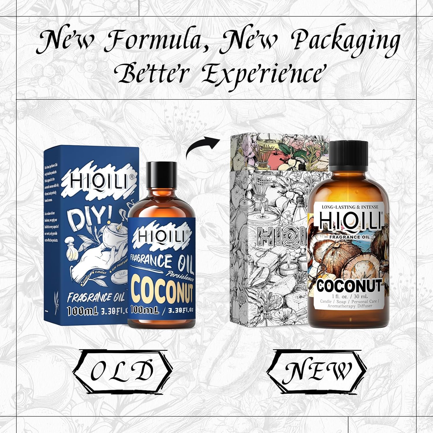 HIQILI Coconut Fragrance Oil for Home Diffuser, Ideal for Making Candle, Soap, Body Spray, Women's Perfume, Creamy Scents - 1 Fl Oz