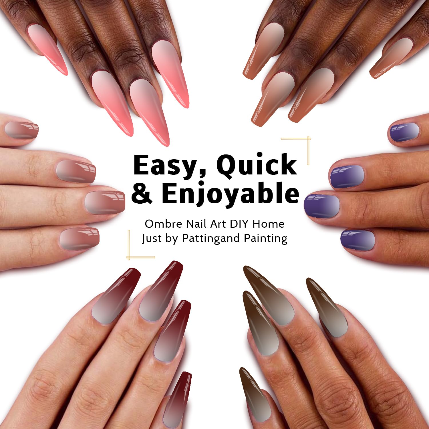 - 【HAVE FUN:】Karroy ombre nail gel will bring you great fun by self-coloring mixing, sponge-patting painting, brushes drawing & dotting, ect. It's easy, colorful, and wonderful! Package list: 9-Color Palette, 6PCS Nail Art Brushes, 1 Grabber, 100PCS Nail Sponges.