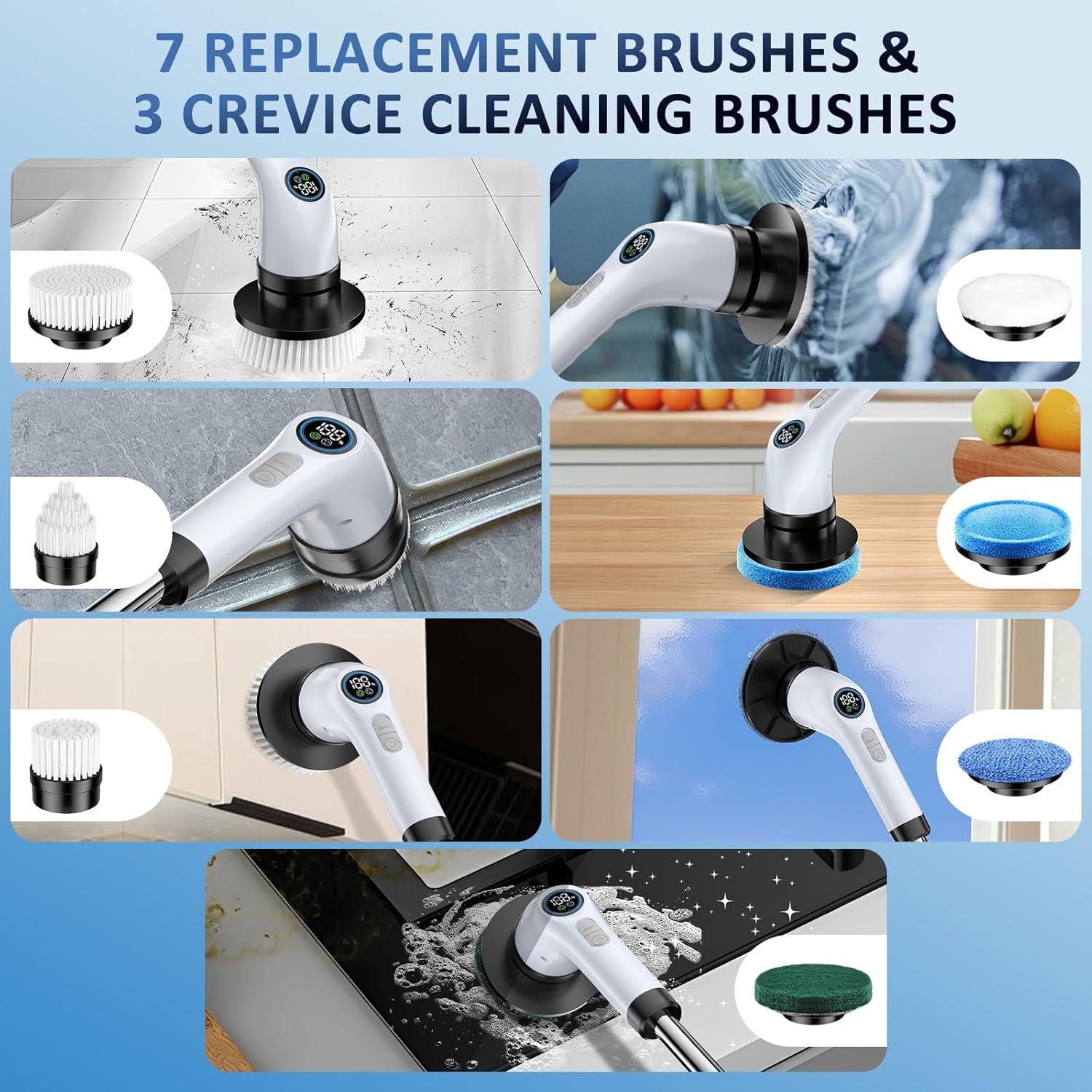 - Electric Spin Scrubber 2025 Upgraded: For those with back or knee issues, bending to clean can be torture. The shower scrubber extends to three lengths, eliminating the need to bend or kneel to scrub bathtubs and floors. Simply grip it, and it handles all cleaning tasks for you! Additionally, with its built-in large-capacity rechargeable lithium battery, one charge lasts up to 100 minutes