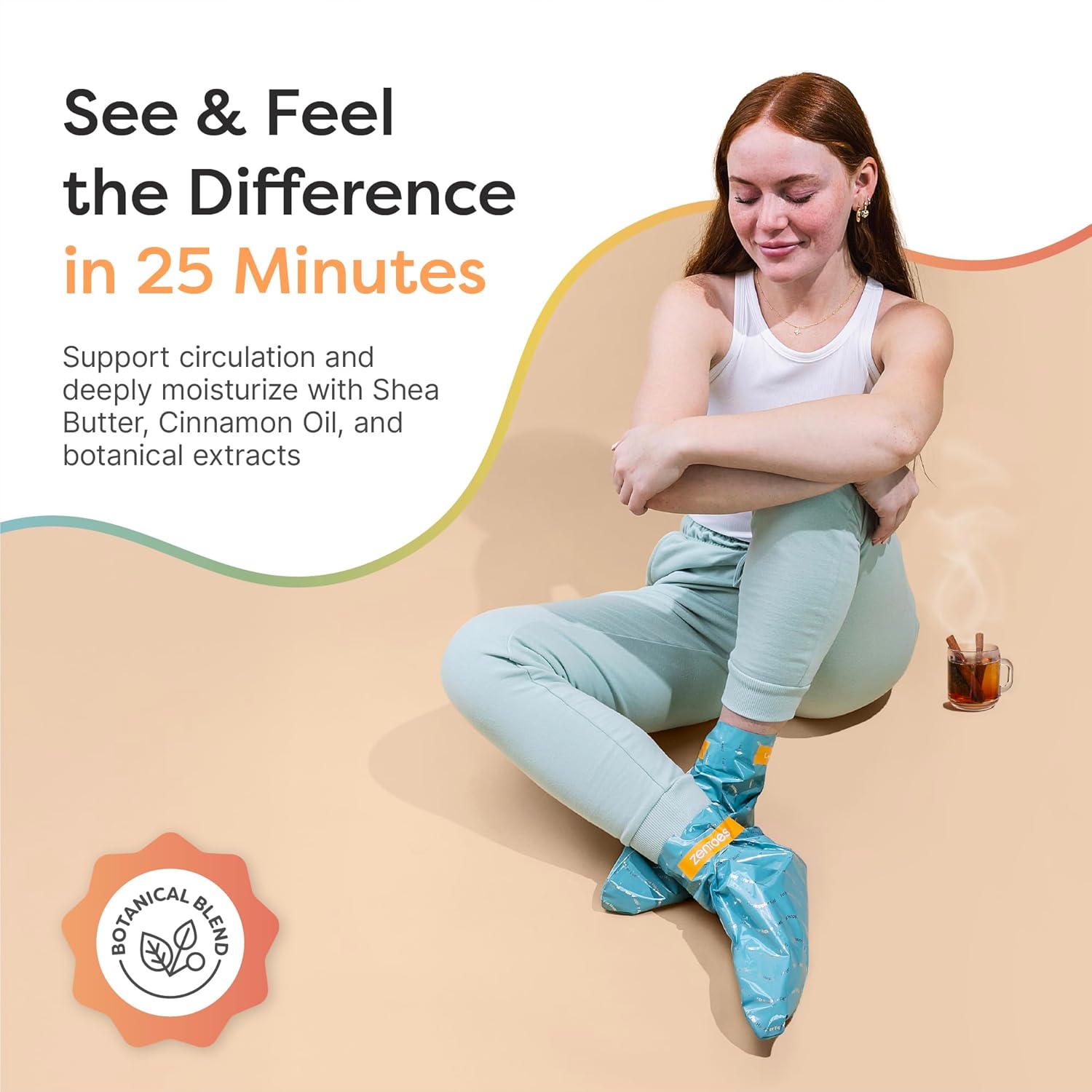 ZenToes Heating Foot Mask - Moisturizing Heated Foot Treatment with Cinnamon Oil & Shea Butter for Tired, Overworked Feet - Paraben Free Spa Experience at Home, 3 Pairs