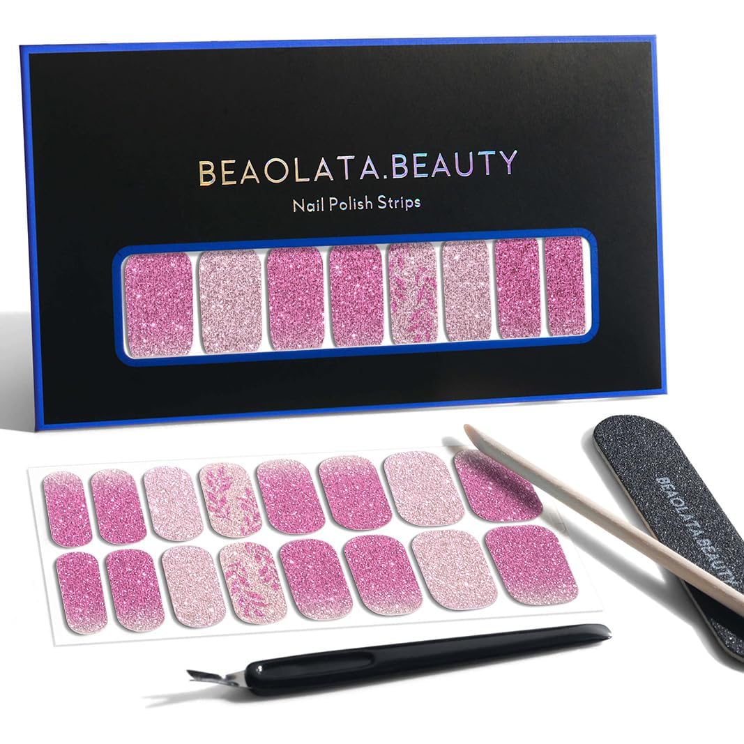 Nail Polish Strips, 32PCS Salon Quality Wraps, Long Lasting Gel Nail Stickers for Women Easy Apply& Remove (Pink Meteor)