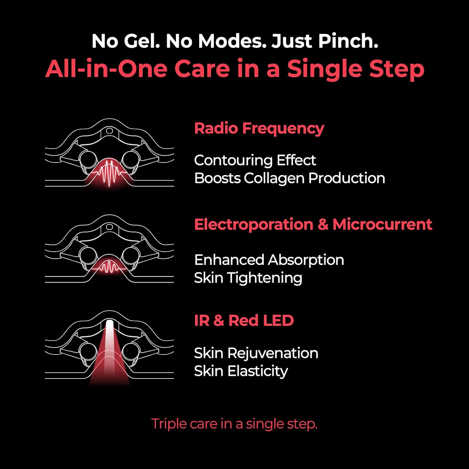 - One Pinch, All the Effects – No Modes Needed: Experience lifting, tightening, and contouring benefits without toggling between multiple settings.