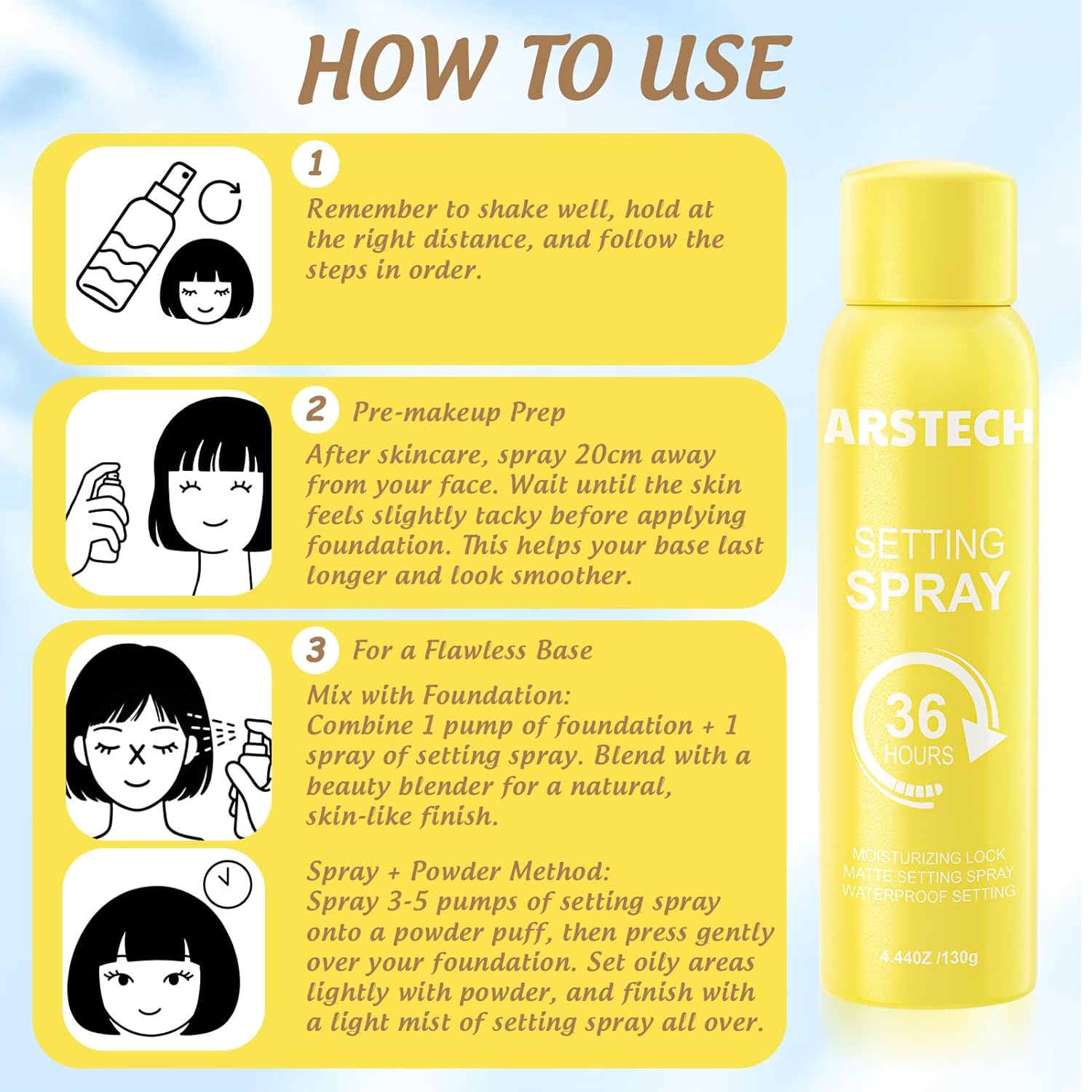- Easy Even Application: Our makeup setting spray for face no more uneven sprays or sticky residue. The ergonomic design and wide mist coverage make it easy to apply evenly in seconds. Whether you're a makeup pro or a beginner, youโll enjoy a hassle-free experience with pro-quality results. Finishing spray for makeup makeup finishing spray for face makeup finishing spray travel size setting spray matte finish setting spray long-lasting setting spray best setting spray.