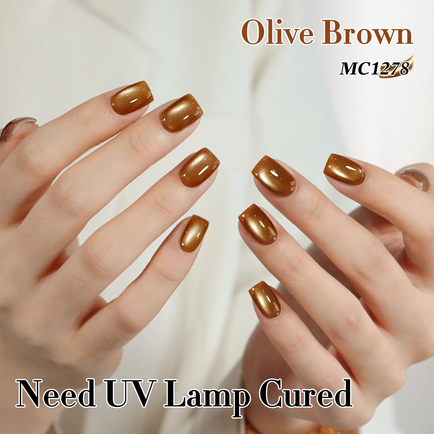 Double Rhythm 0.5 Oz Cat Eye Gel Polish with Magnet Same Color Same Bottle Holographic Glitter Shimmer Translucent Color Salon 15 ML Magnetic Nail Art (Olive Brown-MC1278)