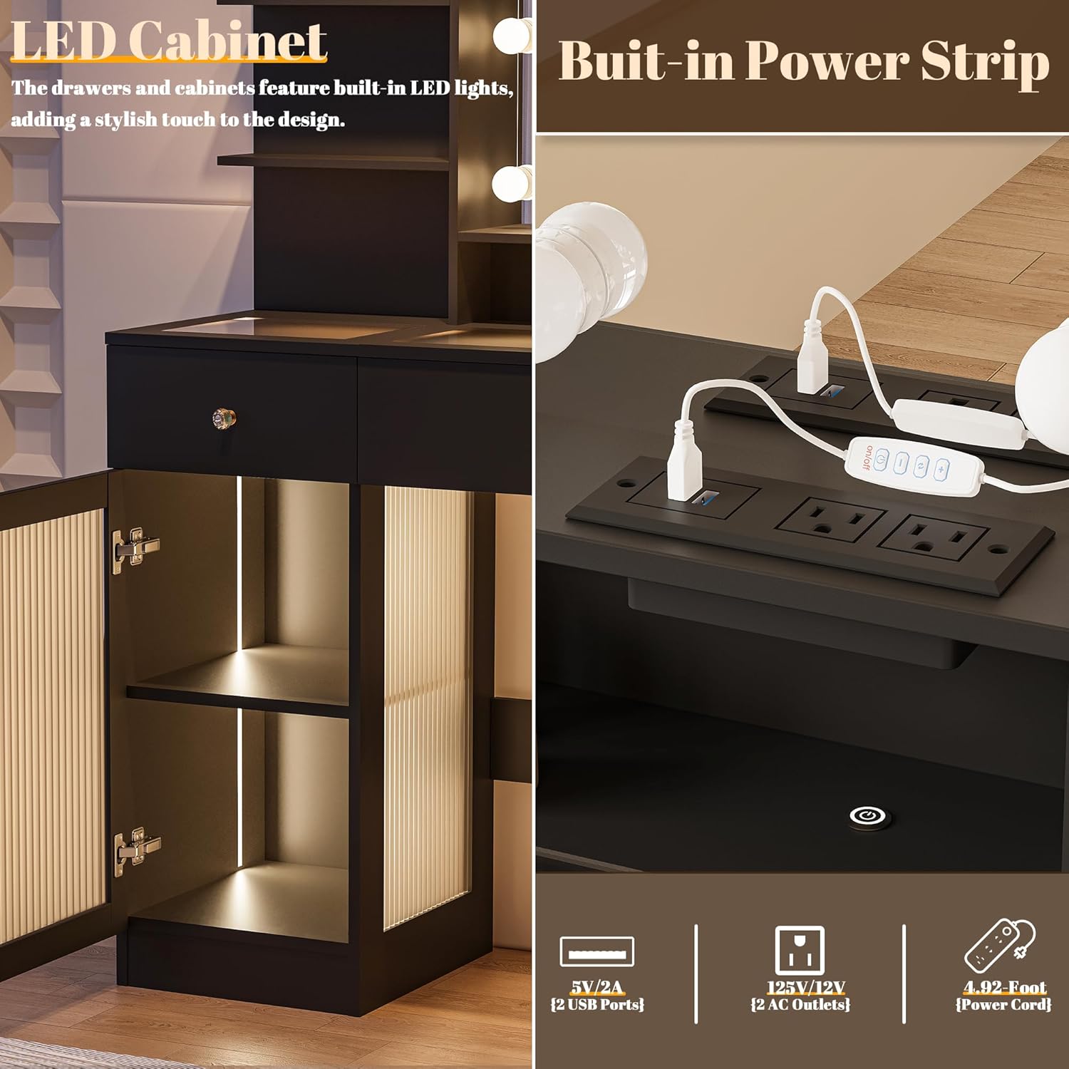 - ăBuilt-in Charging Station and Hair Dryer Standăvanity with lights includes 2 standard electrical outlets, 2 USB ports, and a dedicated hair dryer stand, allowing you to conveniently connect and charge your hair tools, smartphones, tablets, and other devices.Stay organized and worry-free with our multifunctional girls vanity.