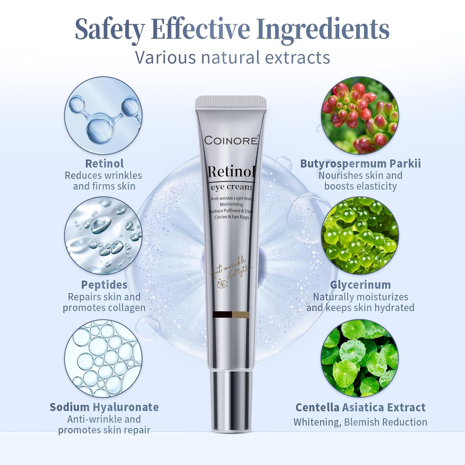 - Powerful Retinol Complex: Our premium eye cream combines retinol with Rosemary Leaf Extract to firm the skin and diminish puffiness. Antioxidant-rich Centella Asiatica Extract and Vitamin E fight environmental damage, while hydrating, smoothing fine lines, and brightening the eye area for a radiant glow.