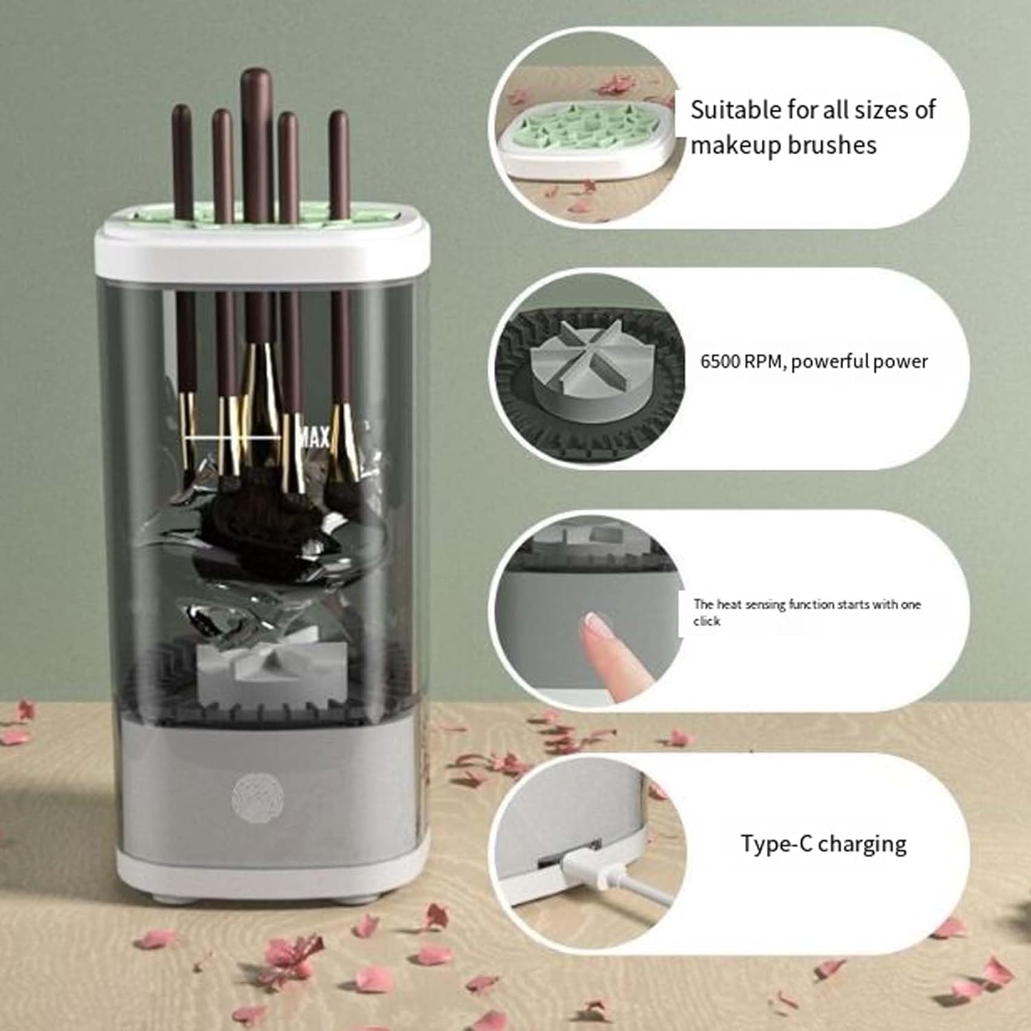 - 【Universal Brush Compatibility】: From small eyeshadow brushes to large powder brushes, is compatible with all sizes and shapes, ensuring one cleaner meets all your brush needs, without risking bristle damage.
