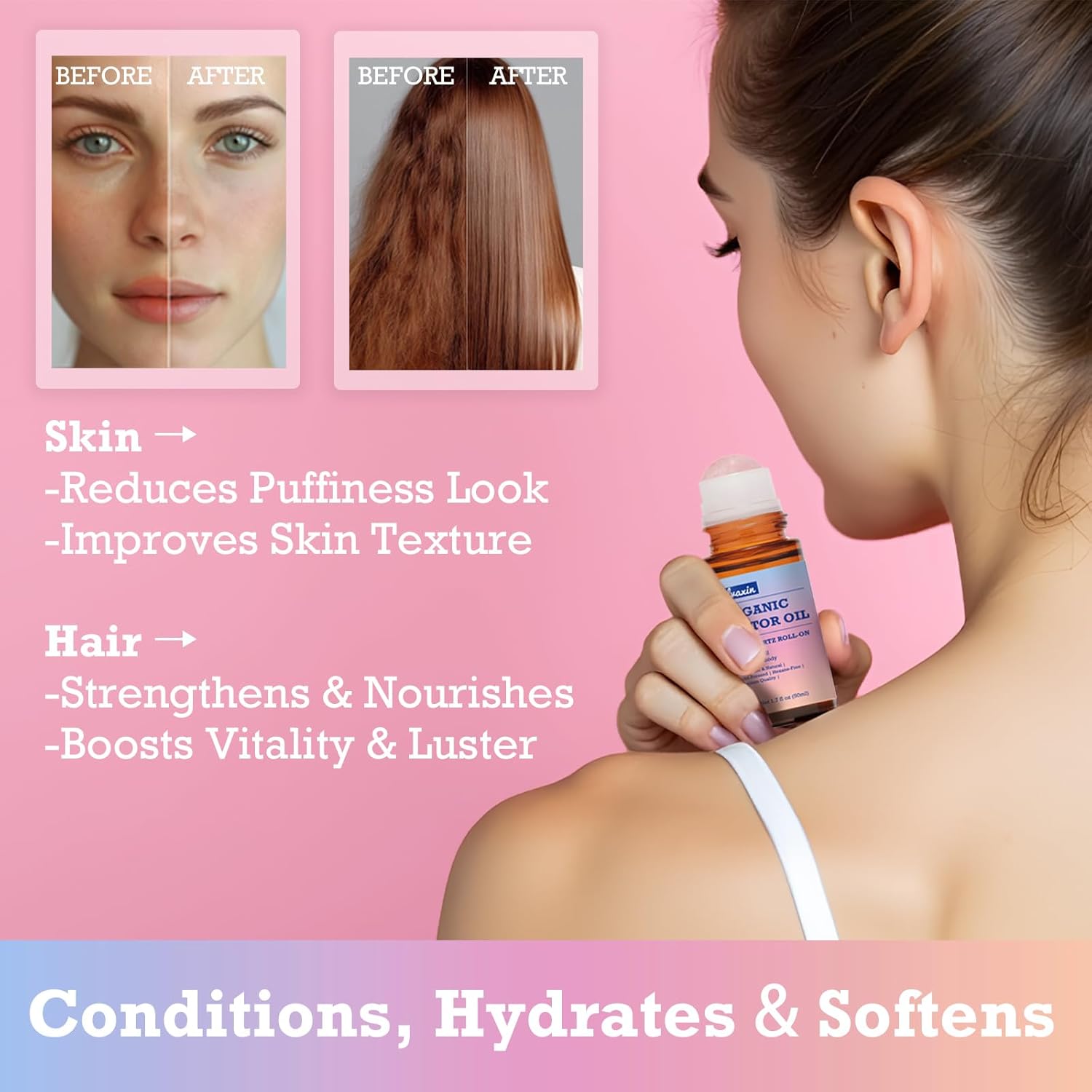 - 【Organic Castor Oil – 2 Pack】 Pure, cold-pressed castor oil in convenient roll-on bottles for daily moisturizing and conditioning. 2 × 1.7 fl oz (50 mL); Total 3.4 fl oz (100 mL).