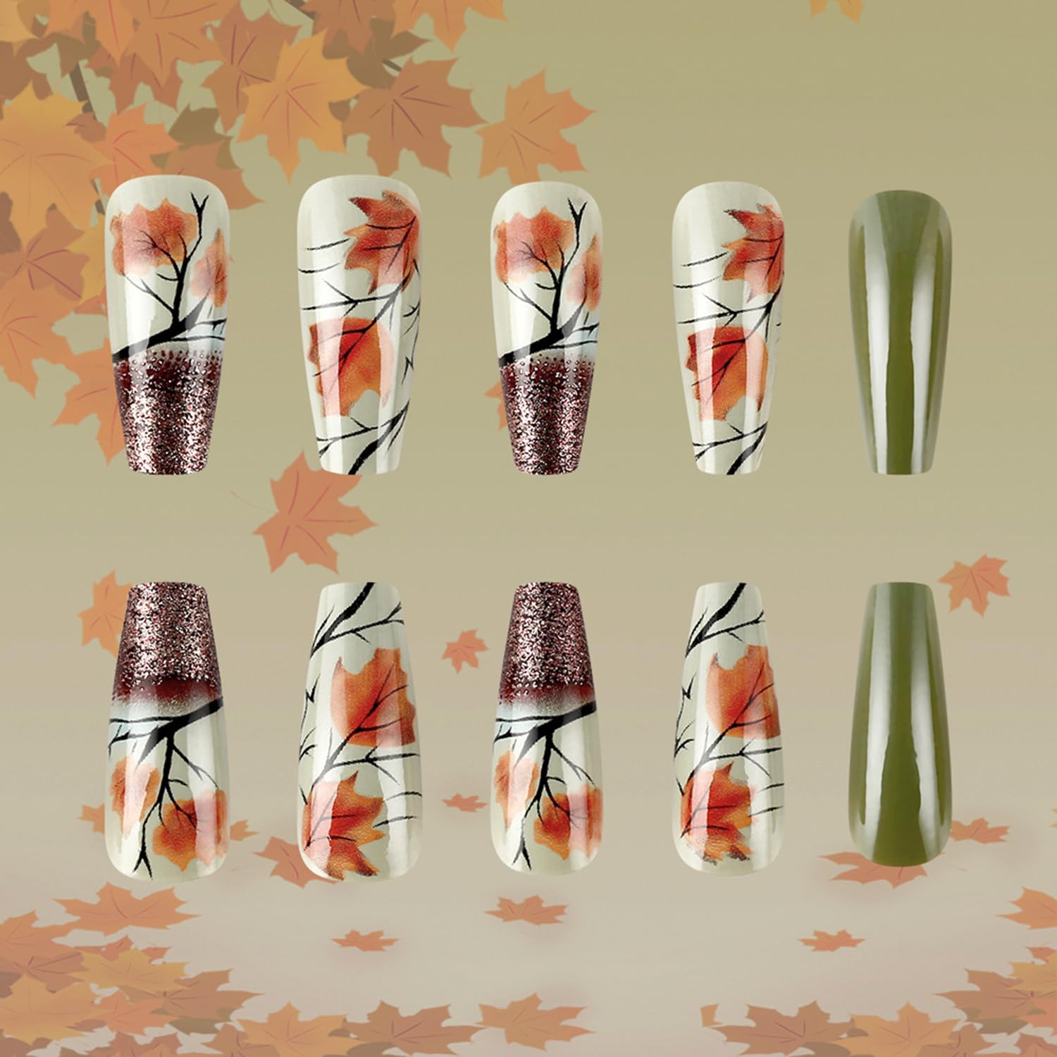 - Easy to Use: Instead of spend lots time and money at nail salon, you can change you nails style in 15 minutes anytime and anywhere. The maple leaves fake nails will stay longer if you clean your nails before use, and avoid water within the first hour of wearing